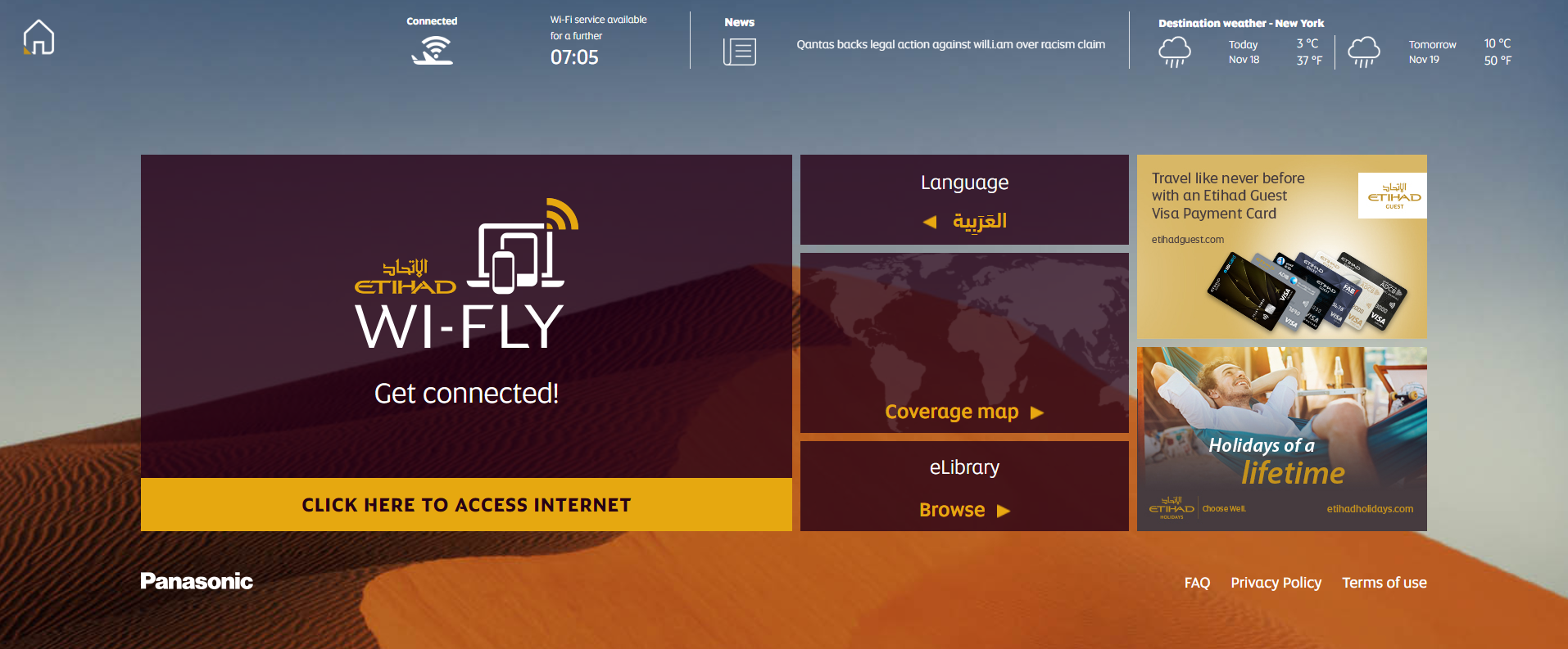 There's no streaming entertainment available over the Wi-Fi network, although there is an eLibrary.