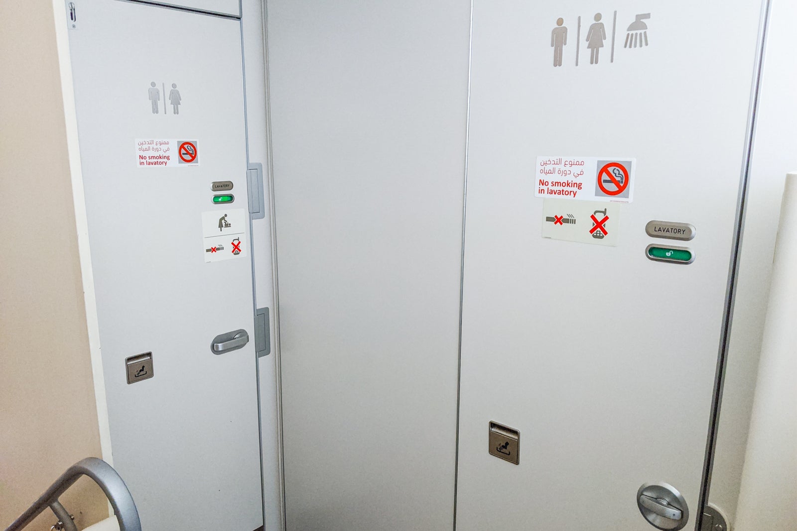 The lavatory farthest from my seat felt more spacious because it only has a toilet.