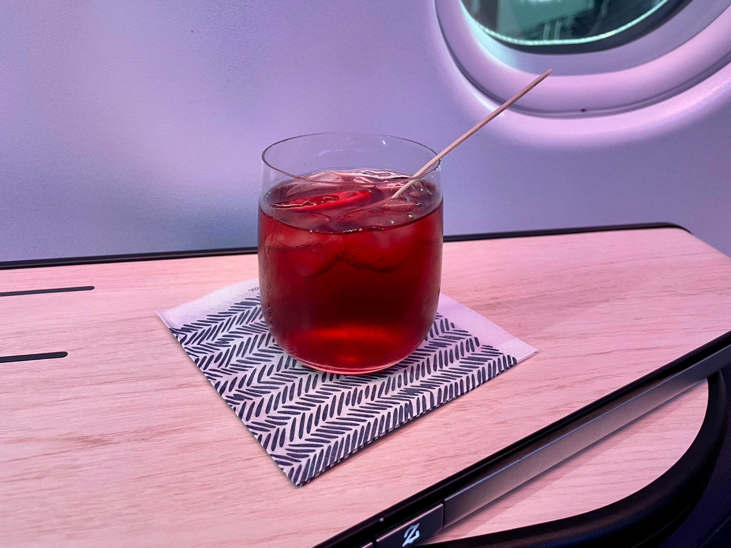As Finland's flag carrier, the airline likes to showcase Finnish cuisine on its rotating menus. On my flight, I enjoyed a welcome drink of blueberry juice and asked for a cheeky dash of gin from Helsinki Distillery to give it a kick.