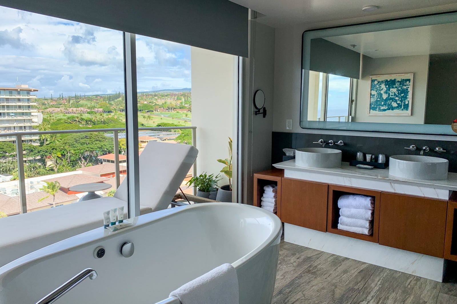 I stayed in a Premier Suite in the new Hōkūpaʻa tower. It's a one-bedroom suite that comes with a drool-worthy tub and excellent views of the ocean.