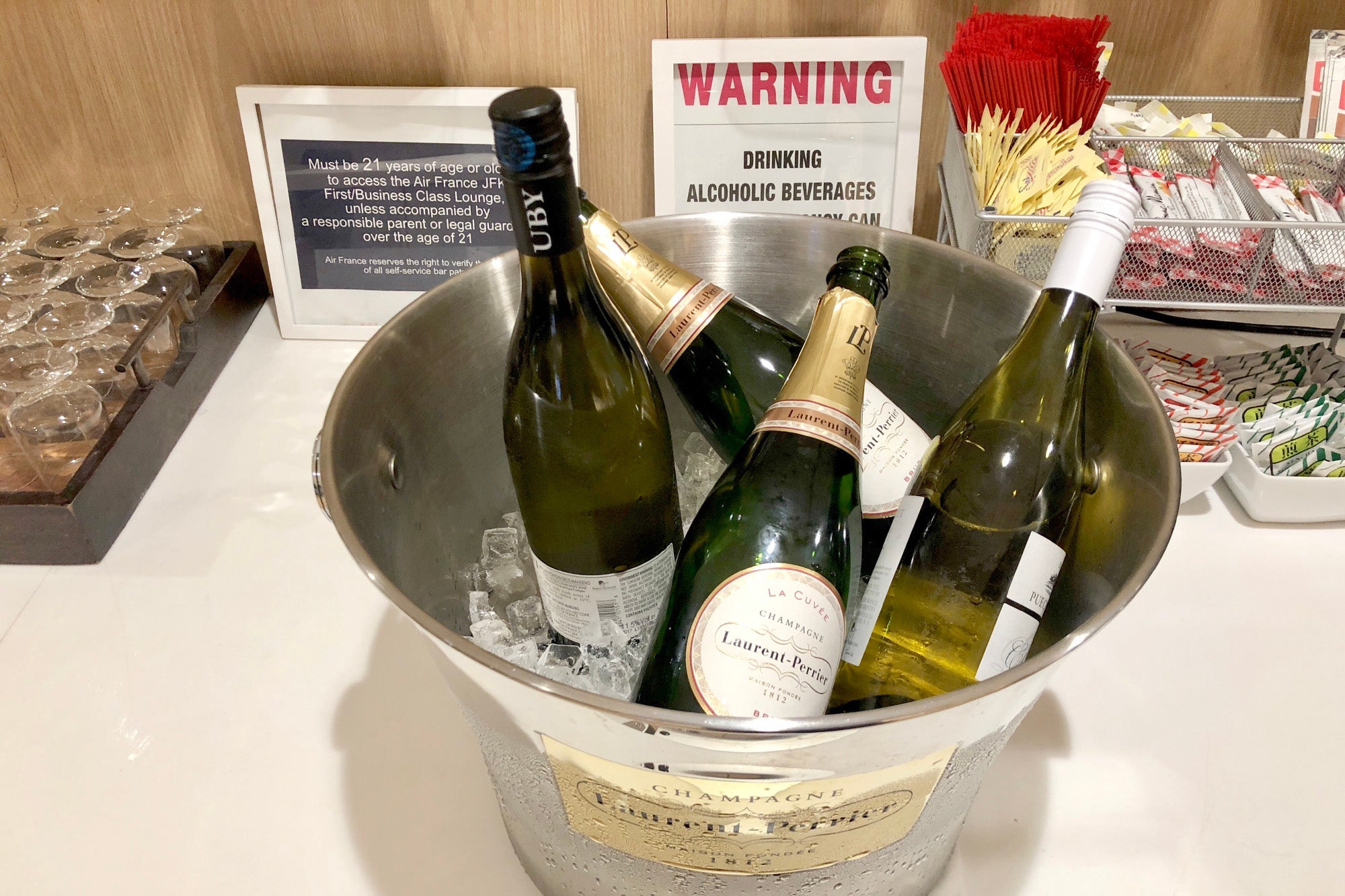 I didn't partake in Night Service this time, as I wanted to see how Air France did its airline food while in the air. I did, however, see another passenger in the lounge take advantage of this — it was a full sit-down affair. I stuck to a glass of Laurent-Perrier and a few mini water bottles while I waited to make my way to the gate.