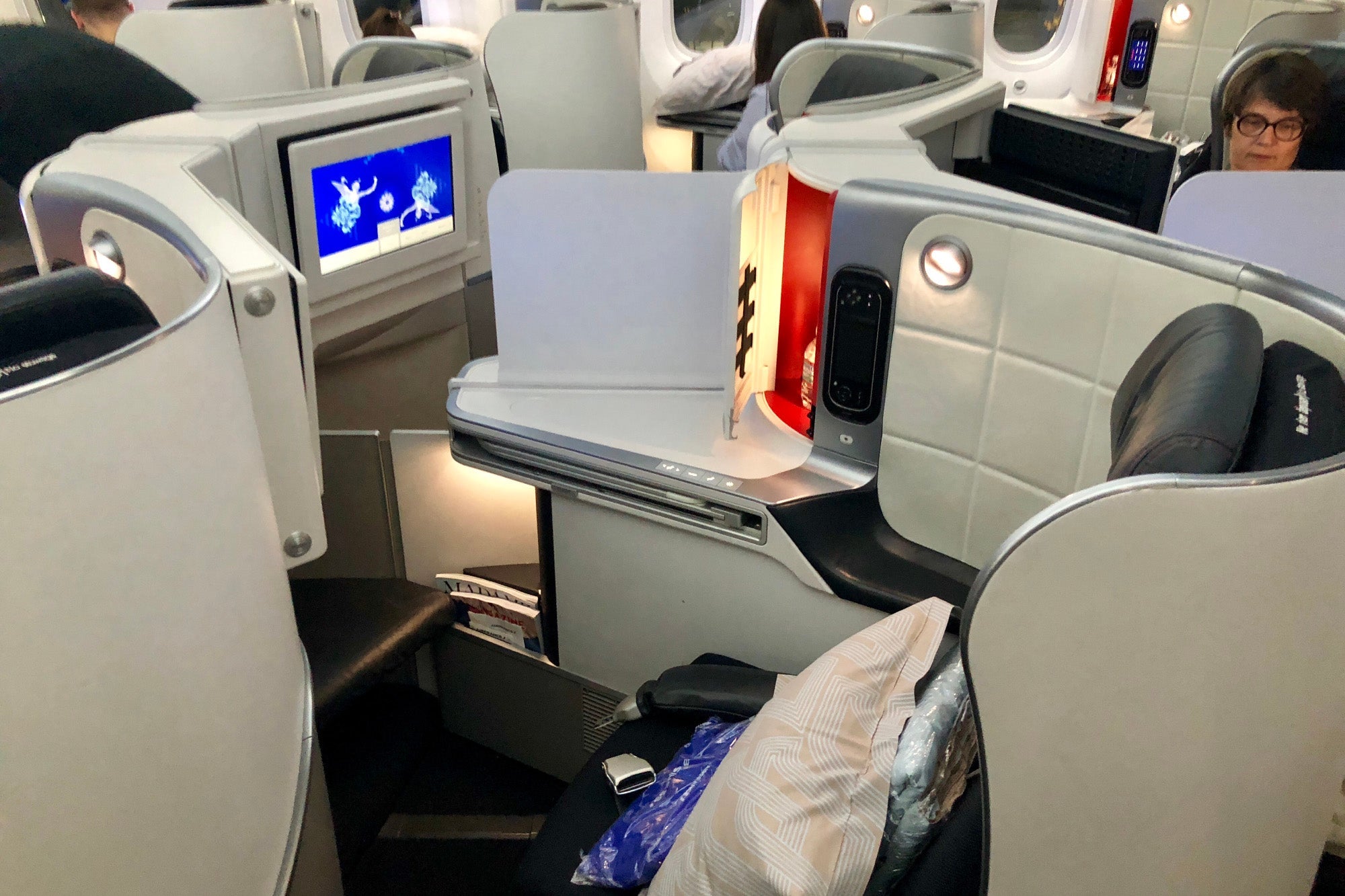 Overall, I really liked the modern reverse-herringbone arrangement, though these seats definitely felt like they were lacking in the privacy department, since the right side of the shell barely extended past the headrest. I felt very exposed, especially as I was reclined all the way and trying to sleep.
