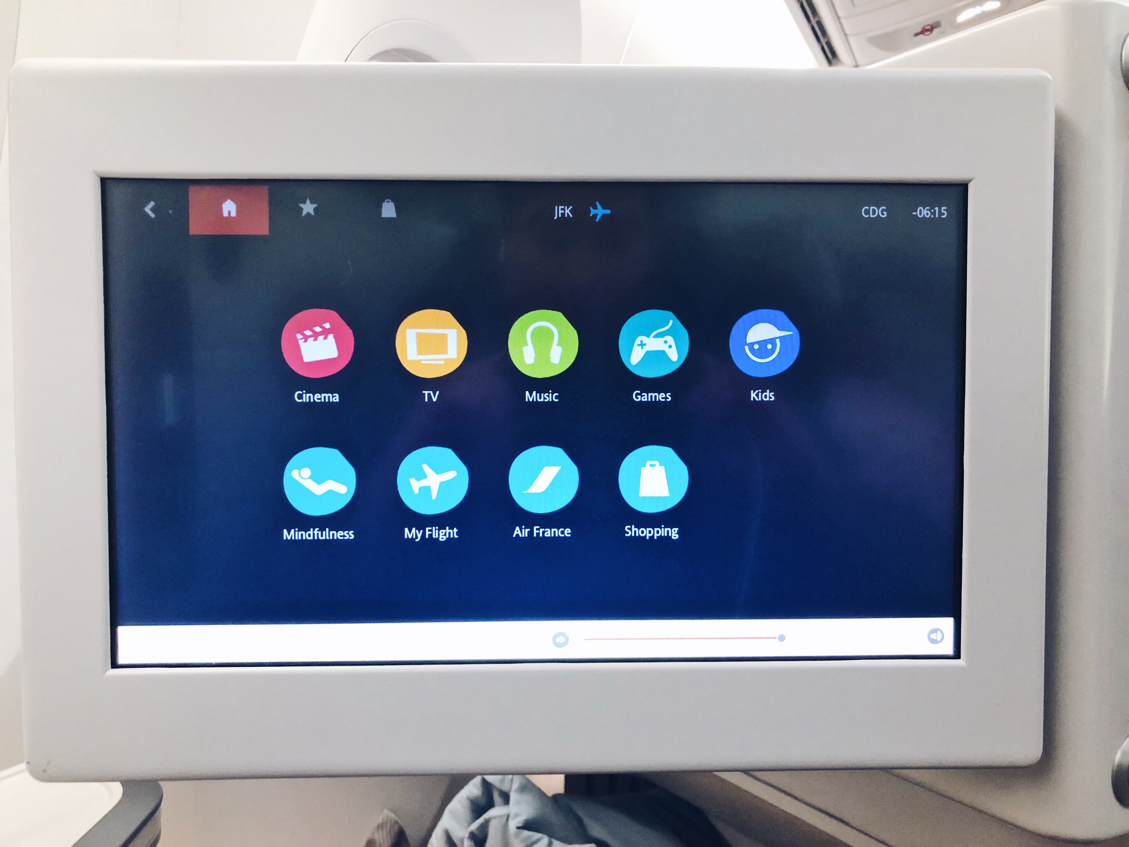The IFE screen itself was sharp and the interface was intuitive and responsive, though the selection of movies (at least for my American tastes) wasn't great. I found one movie to watch while I ate dinner before I went to sleep, but if I'd had a long daytime flight ahead of me, I may have struggled to stay entertained. Air France offers Wi-Fi on its 787s, but I didn't even bother signing in since I was going immediately to sleep after eating.