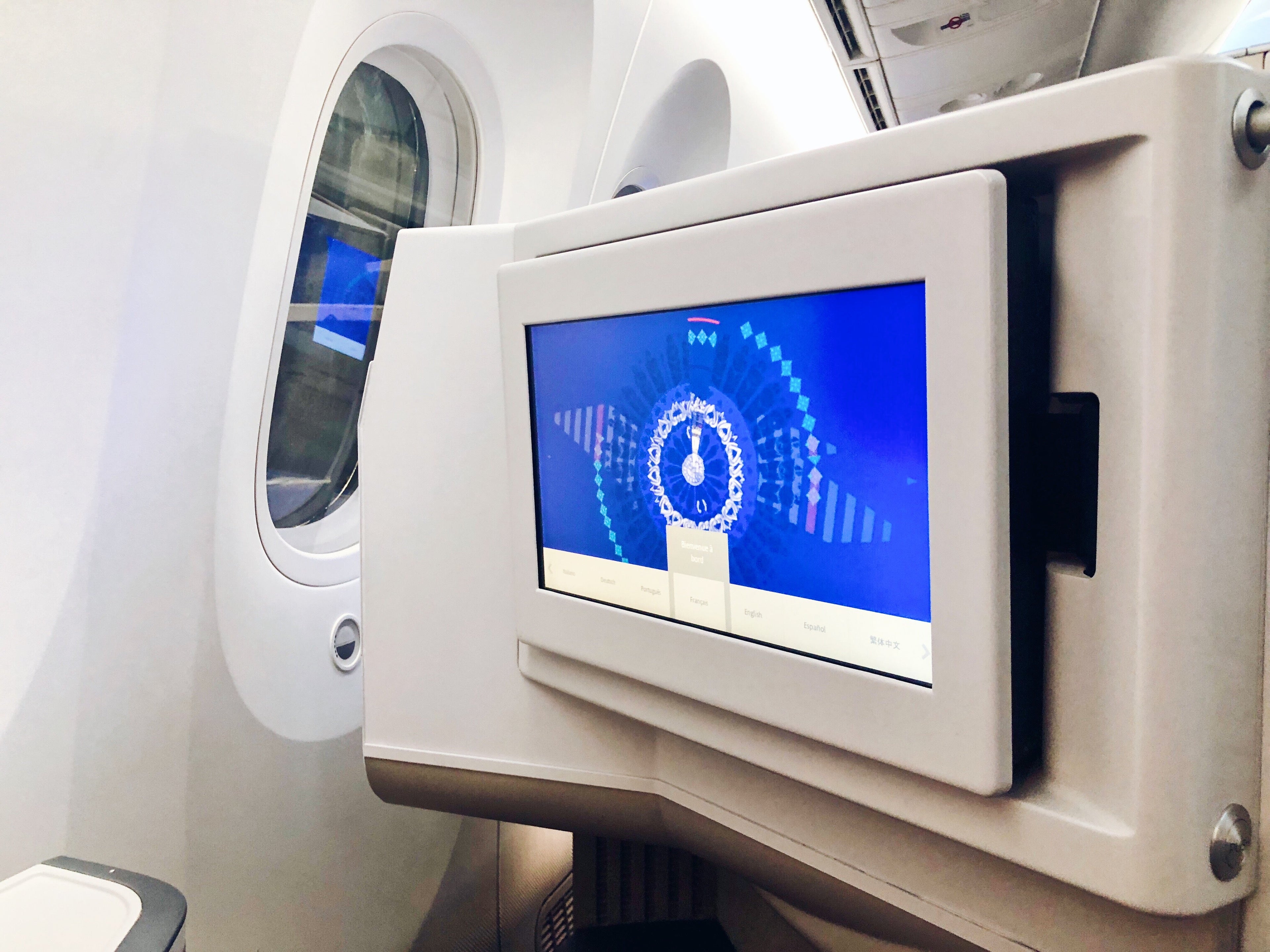 Due to the design of these seats, the IFE screens have to be released from their locked position and then they swivel into a viewable position. The screen itself was fine, but its housing was sort of inelegant. I thought that I'd certainly be scolded for having the screen unlocked during taxi and takeoff, but no flight attendants said anything to me.