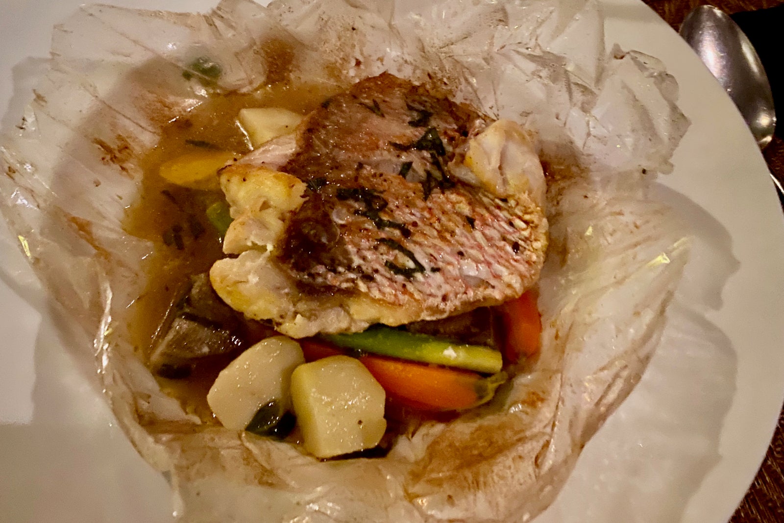 Our dinners here were wonderful. There's a combination or indoor and outdoor seating overlooking the beach. We experimented with some local delicacies and loved them all, particularly the eggplant and clay pot sea bass wrapped in a banana leaf.
