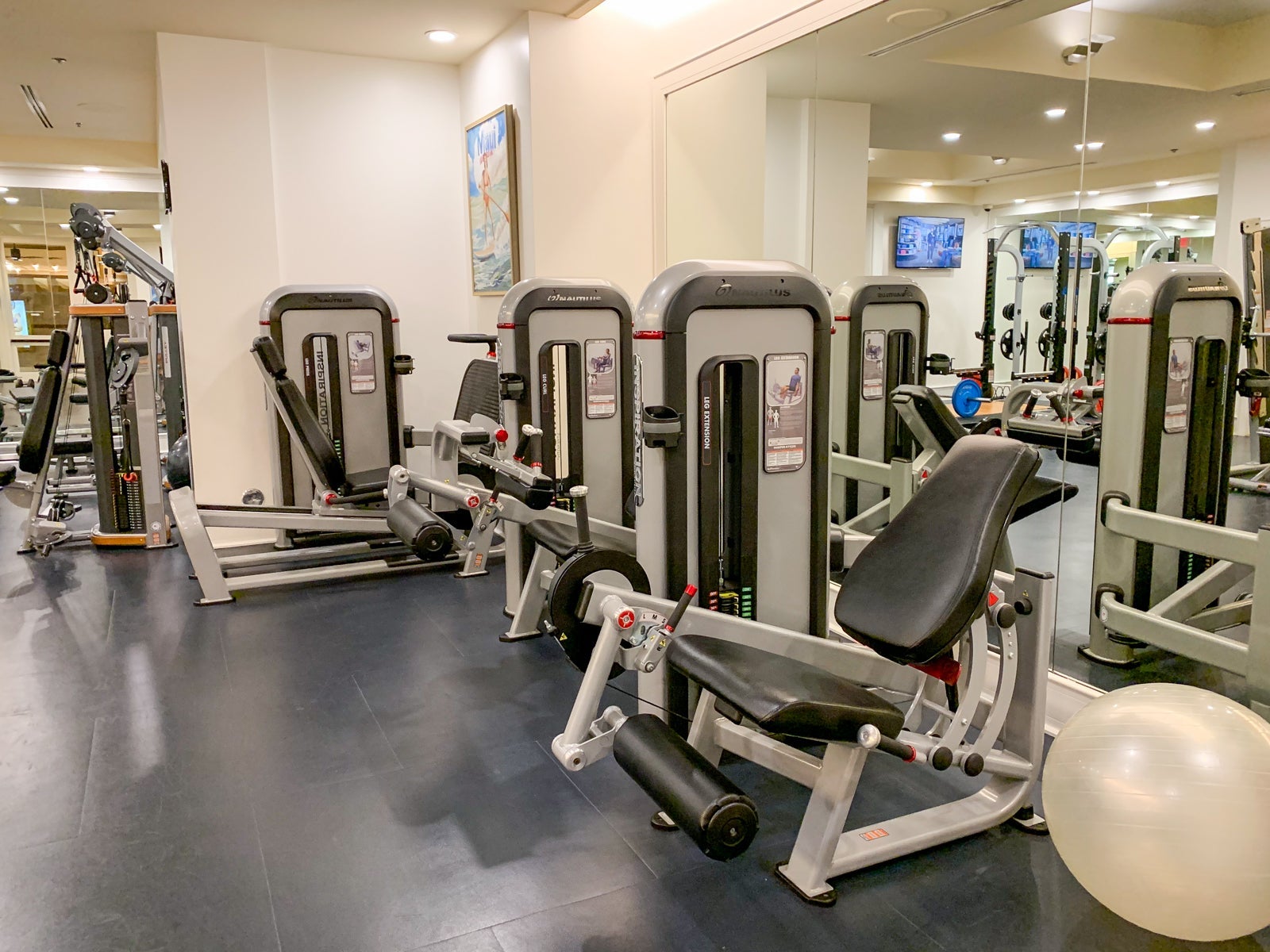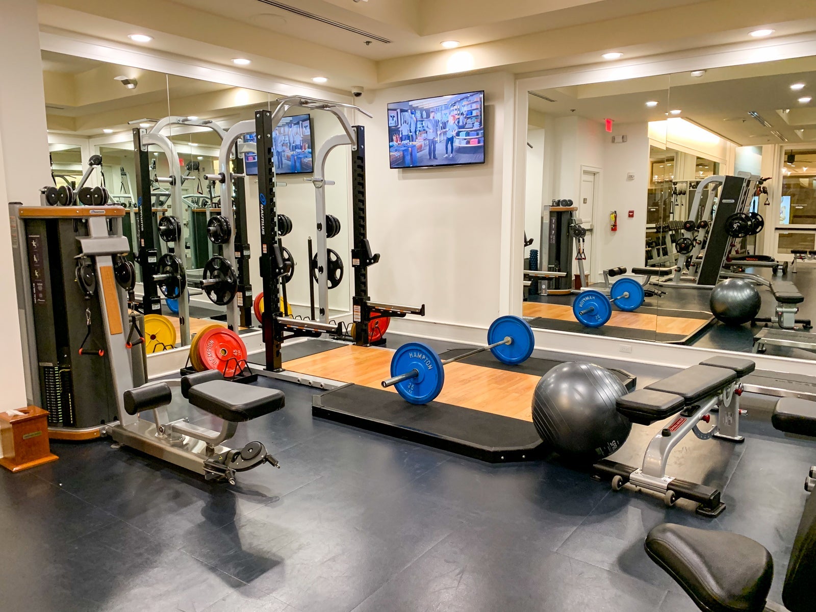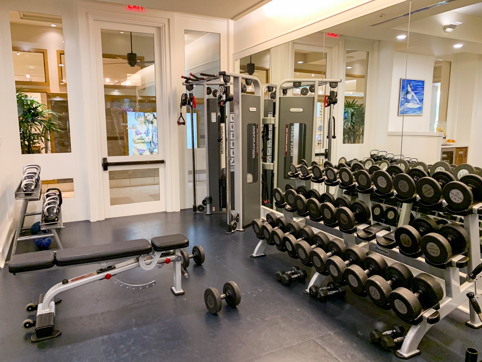 To work off the breakfast buffet, there was an indoor/outdoor gym available 24/7. The outdoor gym was dedicated to the cardiovascular equipment: treadmills, bikes and ellipticals made by Matrix, as well as two Peloton spin bikes. The indoor weight room was well stocked with a variety of different machines and a full set of free weights.