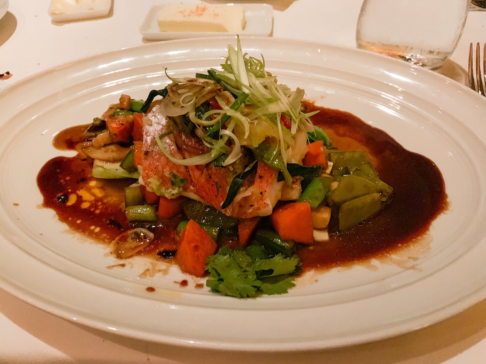 My girlfriend and I then split two fish entrees: She ordered the ginger macadamia nut-crusted mahi mahi ($46), while I ordered the steamed opakapaka prepared Hong Kong-style ($48). We absolutely loved both fish dishes, and looking back at the pictures, I may have just dreamt about returning just for the fresh fish. At this point, we were so full that we skipped dessert.