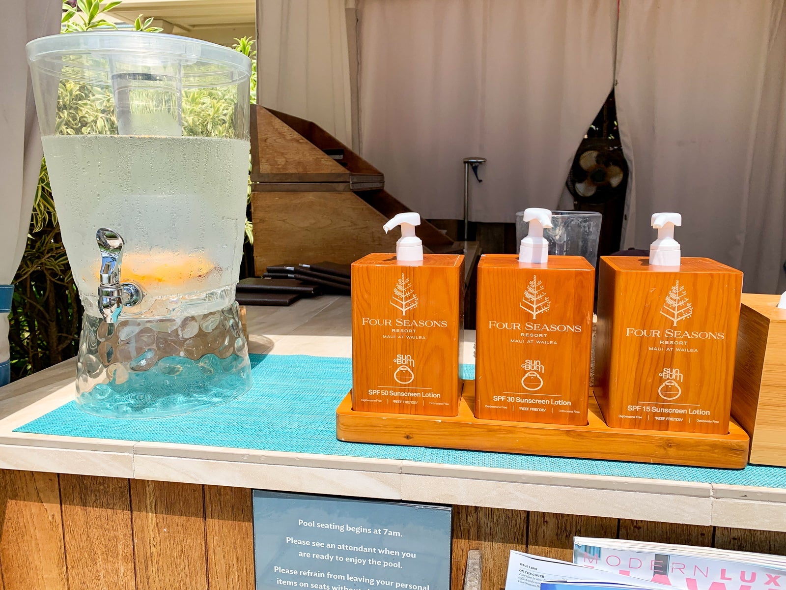 There was complimentary sunscreen and water throughout the entire pool and beach area (sans resort fee!).