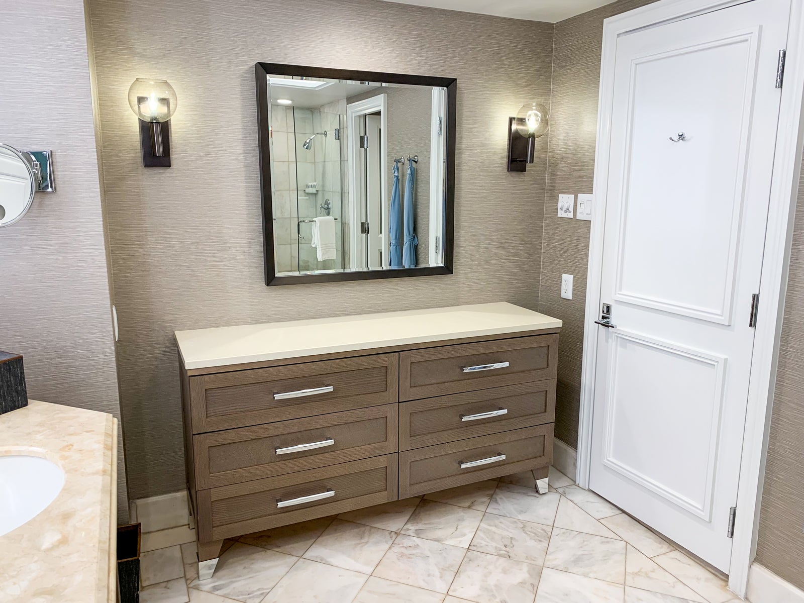 Though there wasn't much drawer space in the bedroom, there was a large dresser in the bathroom with plenty of drawers and counter space.