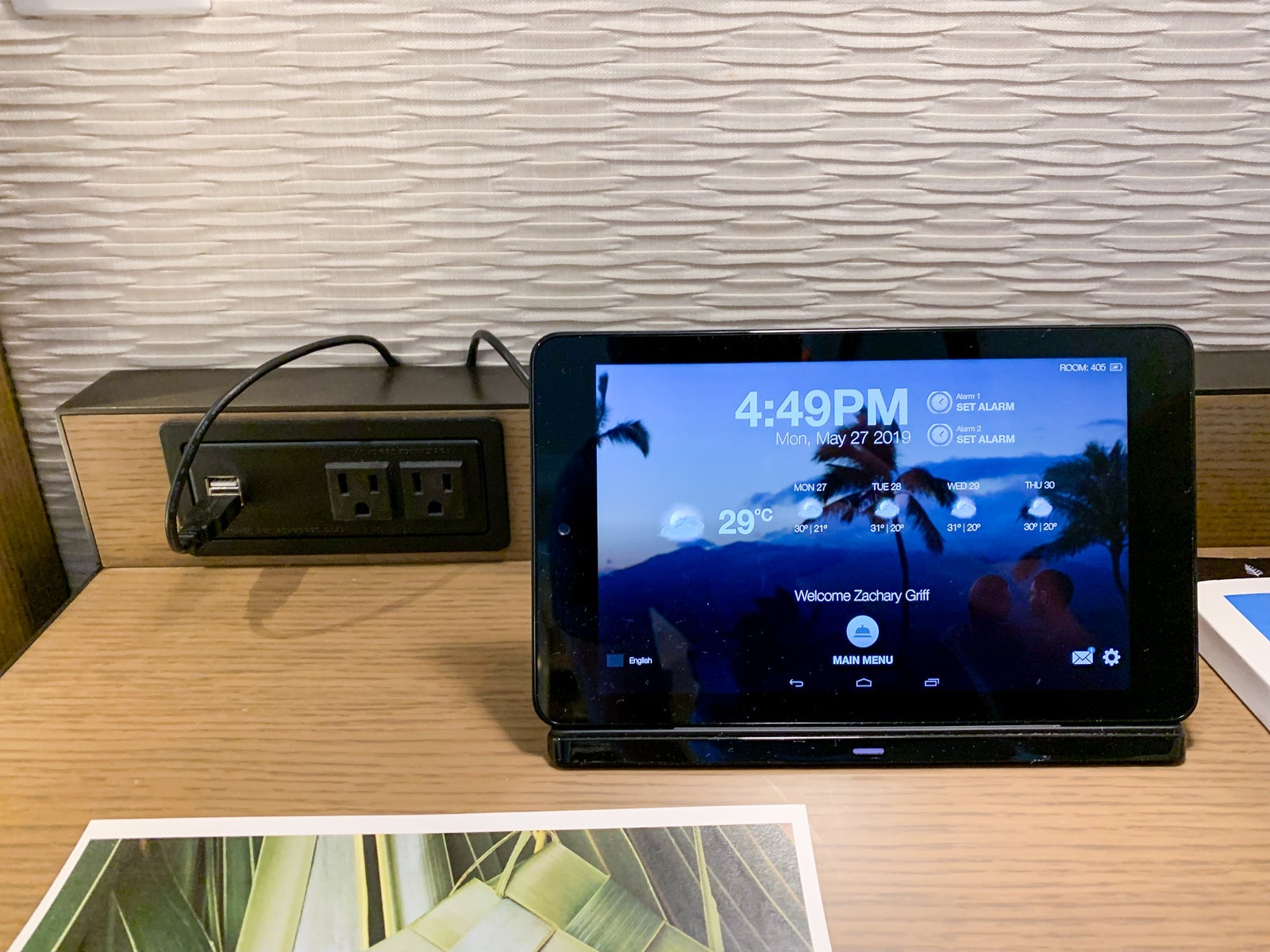 The large nightstands next to the bed had personalized iPads as well as AC outlets and USB ports.