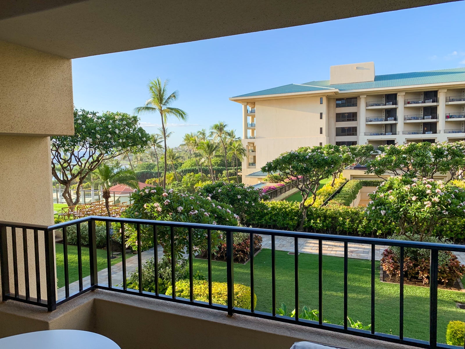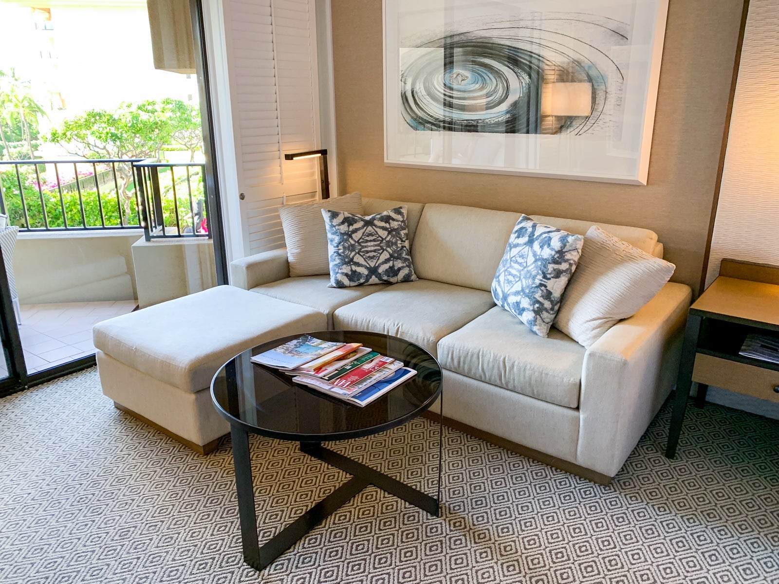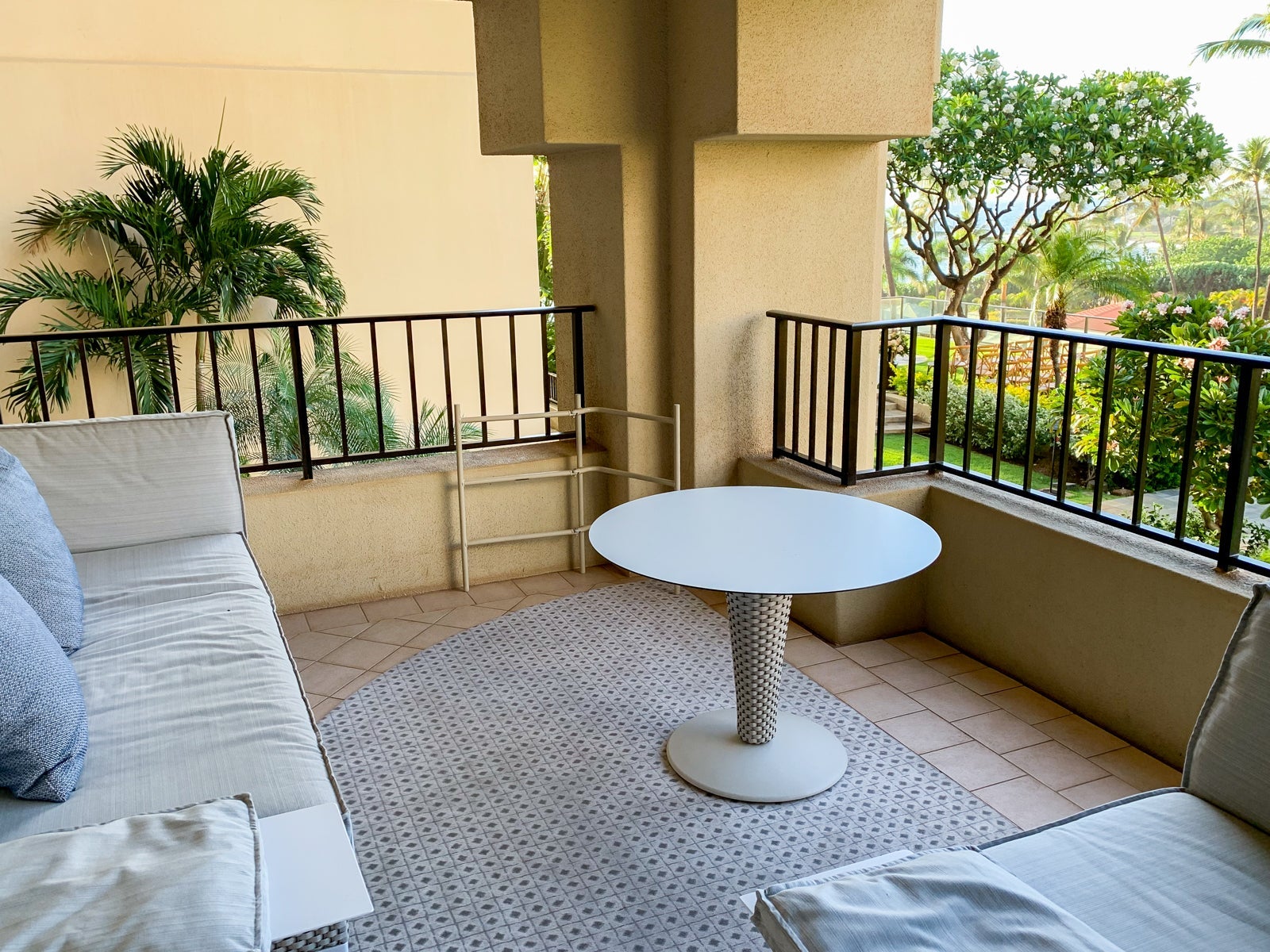 When it was sunny outside, I loved relaxing on the rectangular outdoor lanai, which featured a full-sized couch and smaller chair. We only had partial ocean and resort views, but I wasn't complaining, since the resort's foliage was beautiful as well.