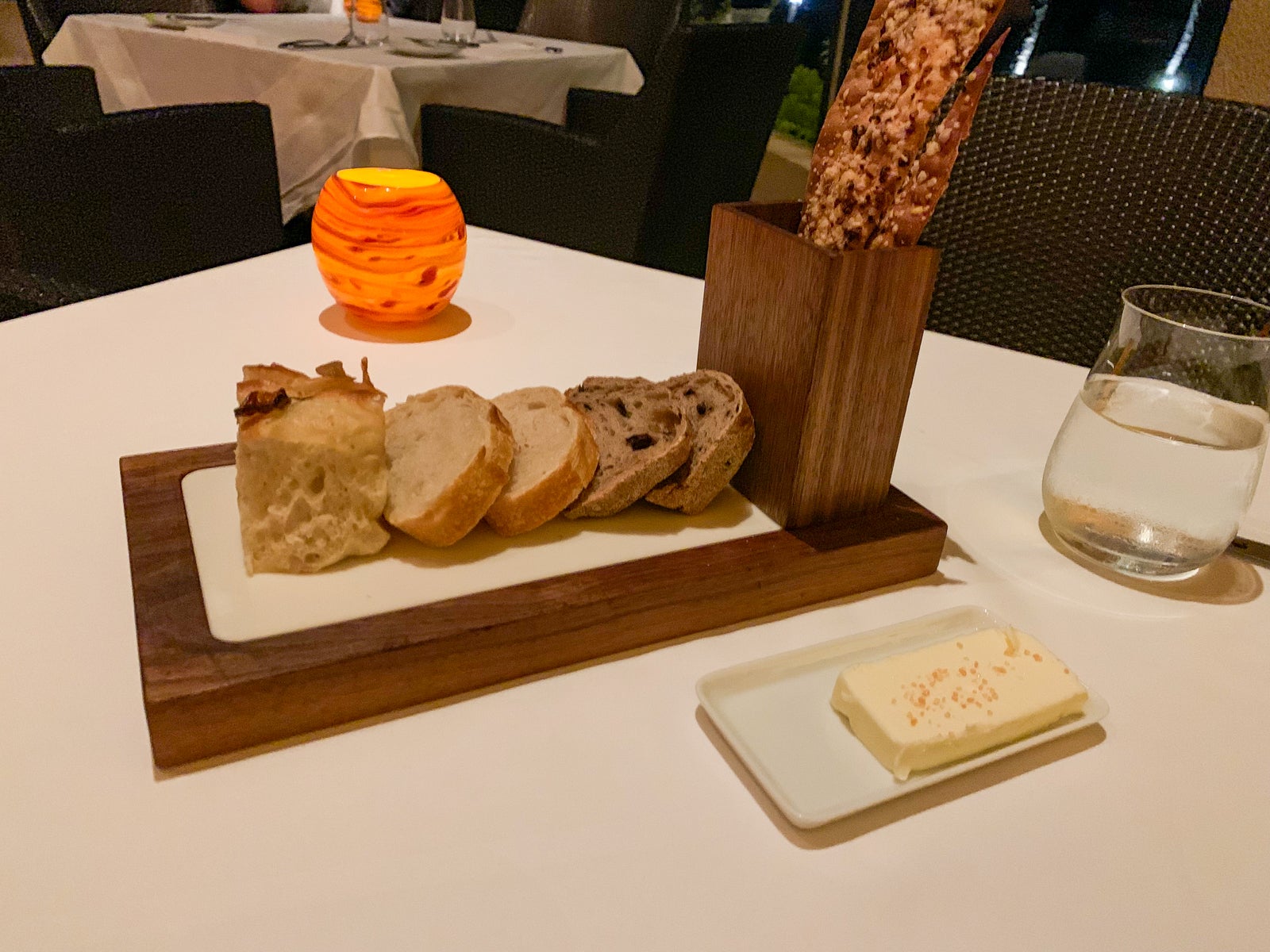 Dinner began with a delicious assortment of breads. Special shoutout to the raisin walnut bread.