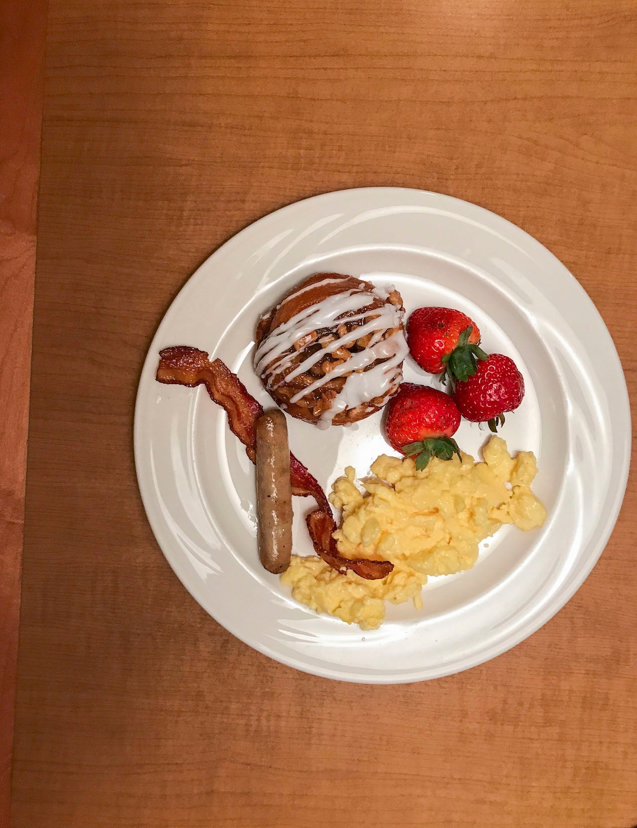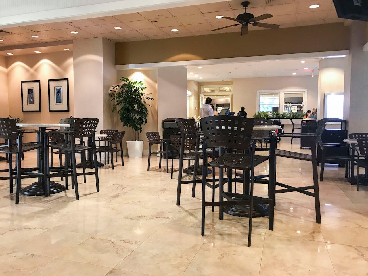 The Mainstreet Market was better. It had hot breakfast sandwiches, pastries, oatmeal, cereals, fruit and pretty much anything you could want in the morning. Even better, two cups of Starbucks coffee were included in the resort fee, and there was a cute seating area right outside of the market.