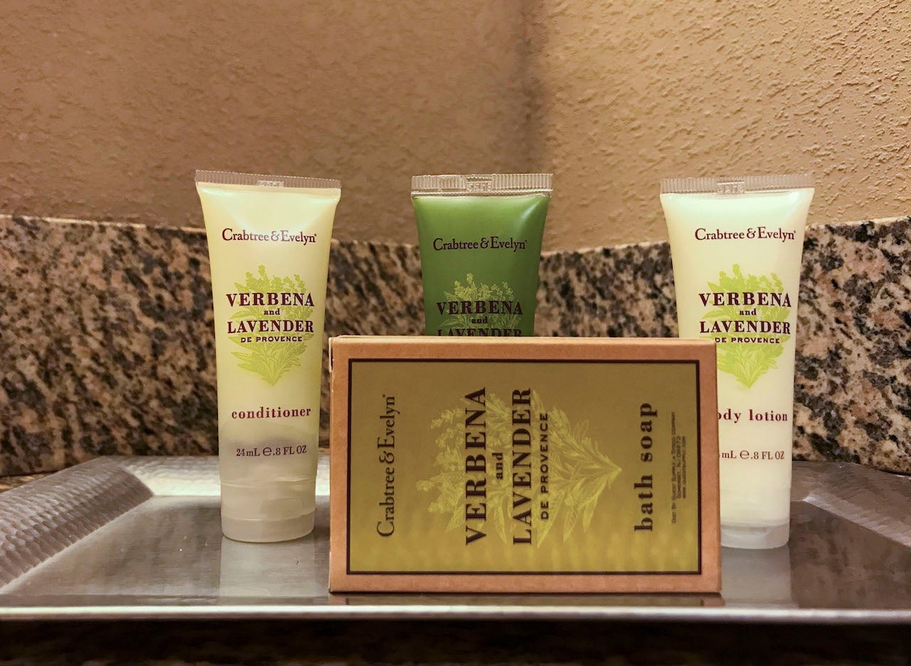 The bathroom also featured a bathtub, which seems to be going the way of the dodo in most hotels. (Not having a bathtub puts families with babies or toddlers who aren't ready for showers in a bind.) Toiletries were take-home-worthy Crabtree & Evelyn lavender and verbena.