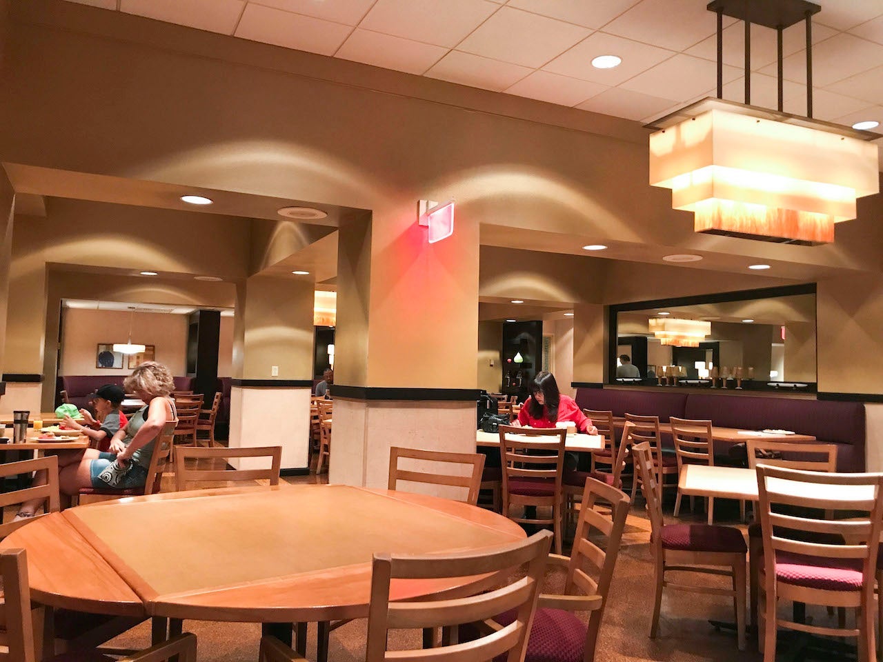 At dinner, the two restaurants that were open included Andiamo, with an Italian-ish menu, and a Benihana steakhouse. I would encourage you to consider the many options at Disney Springs for dinner if you are up to venturing a bit further afield. Pretty much anything in Disney Springs will top the dining options at the Hilton Orlando Lake Buena Vista.
