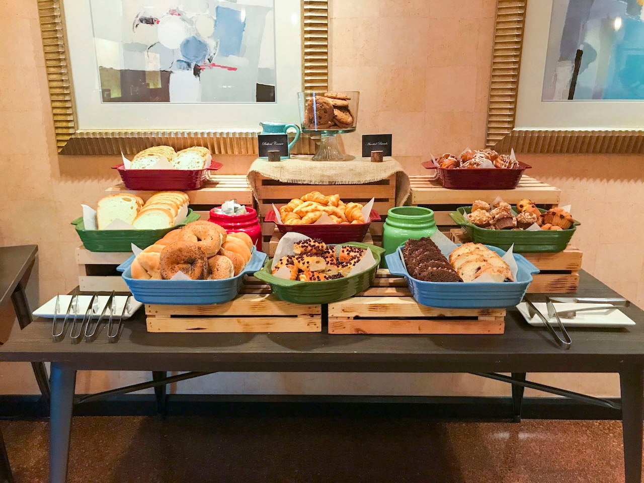 Hilton offered their Gold and Diamond members complimentary breakfast (and remember you can get Hilton Gold or Diamond status simply by having a cobranded credit card). The Hilton didn't have a traditional lounge, but they set up a dedicated space in one of their restaurants for elite guests. The breakfast buffet was pretty standard for a club lounge, including fruit, cereal, pastries, juice and coffee. A hot bar added eggs, bacon and potatoes to the mix.