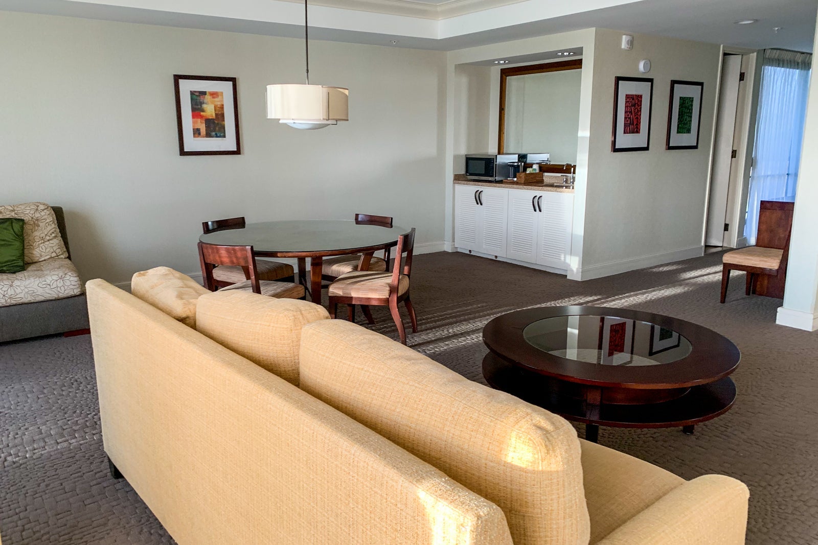 The woman at check-in was lovely, and told me she had just been called back to work. We had a good chat about the hotel reopening and what it had been like to get things back up and running. Despite my Diamond status, she wasn't able to offer me much in the way of an upgrade. I did finally accept her offer for a one-bedroom suite for an extra $150 plus taxes and fees per night because, as I mentioned, I was traveling with a friend and her teenage son.
