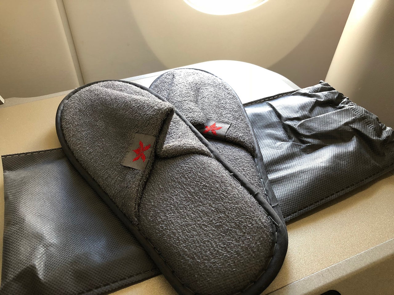 The service was commendable during every part of the flight. Within two minutes of boarding, I was personally greeted and offered an orange juice or water. About five minutes later, I was given a set of slippers — a must to avoid having to put shoes back on midflight to use the bathroom. That level of service continued throughout the flight, and the crew's attention to detail was impressive.
