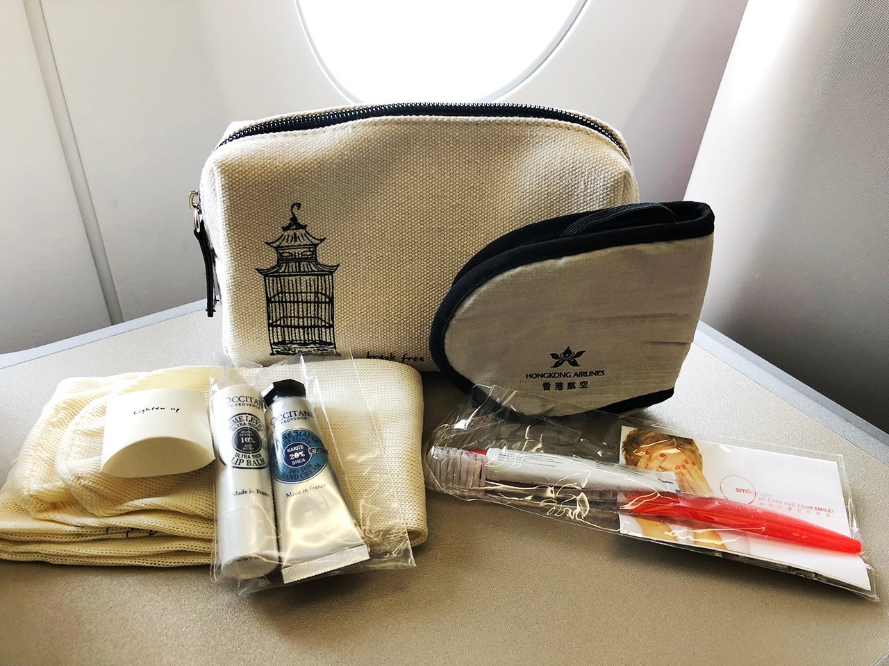 Amenities helped to make the flight complete. My favorite was none other than the amenity kit itself, which had an eye-catching design. Inside were the usual basic offerings — socks, eye mask, dental kit, lip balm and hand cream from L'Occitane — but the design of the kit itself made it something I'll continue to use.
