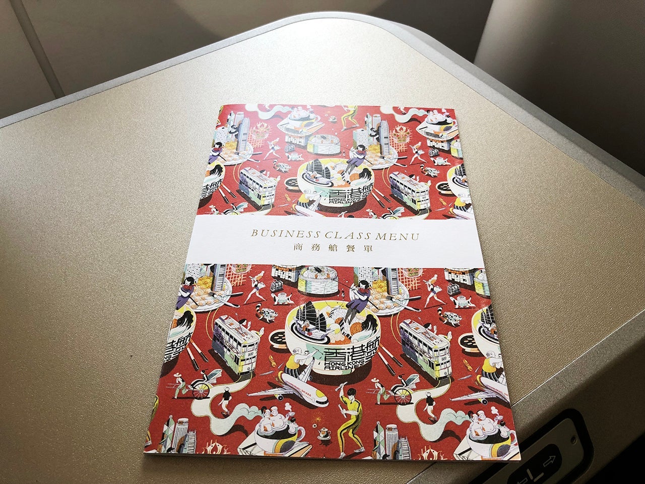 In the best way possible, the highlight of meal service on this flight was the menu, which had a design that conveyed a fun, lighthearted message inspired by the city of Hong Kong. The creative menu art, created by Los Angeles-based and Hong Kong-born illustrator Victo Ngai, was a fun way to begin the meal service.