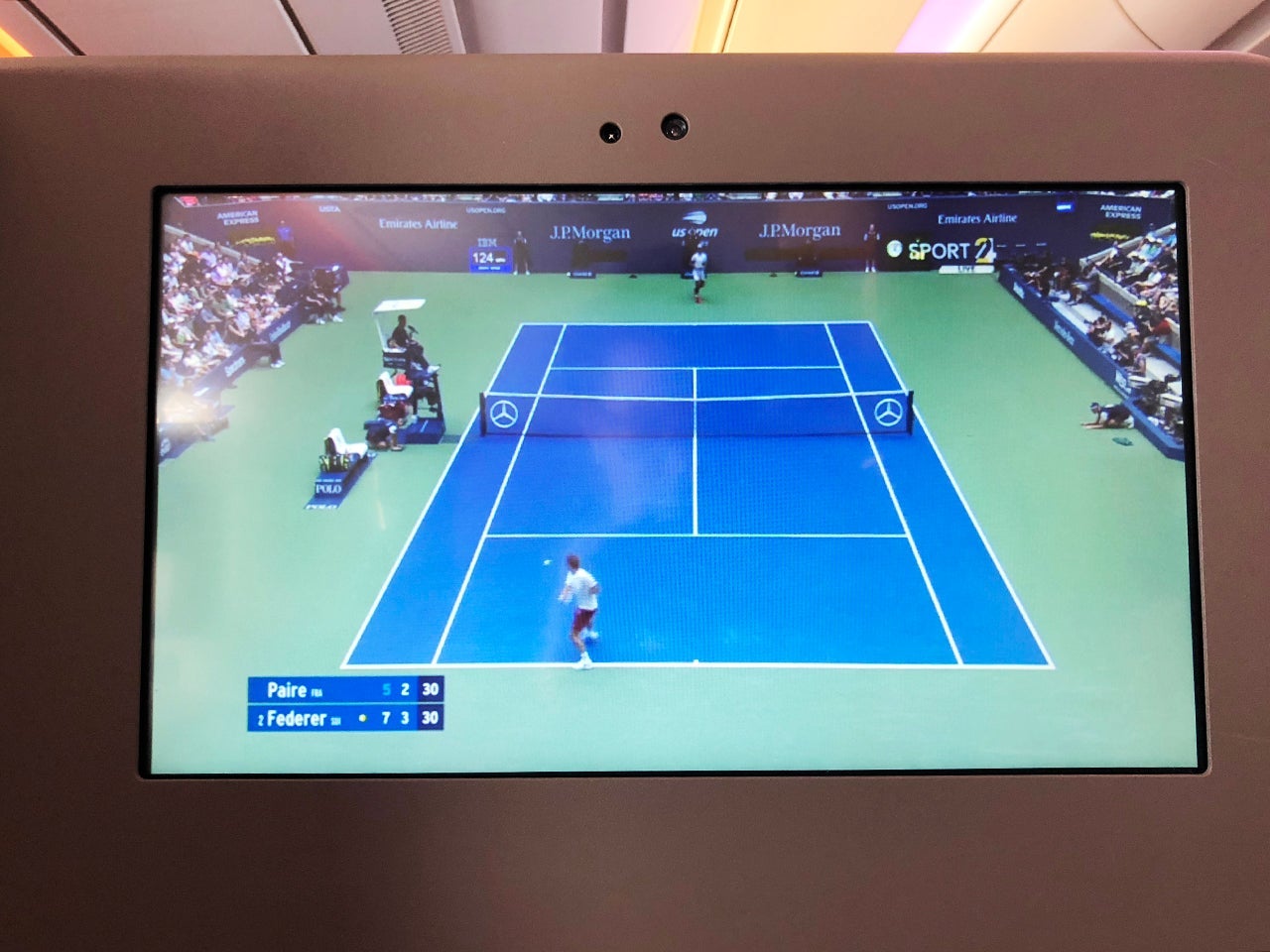 The in-flight entertainment had plenty of options, with a number of new releases and live TV (only available over the continental US). For a short period, I was able to livestream the US Open.