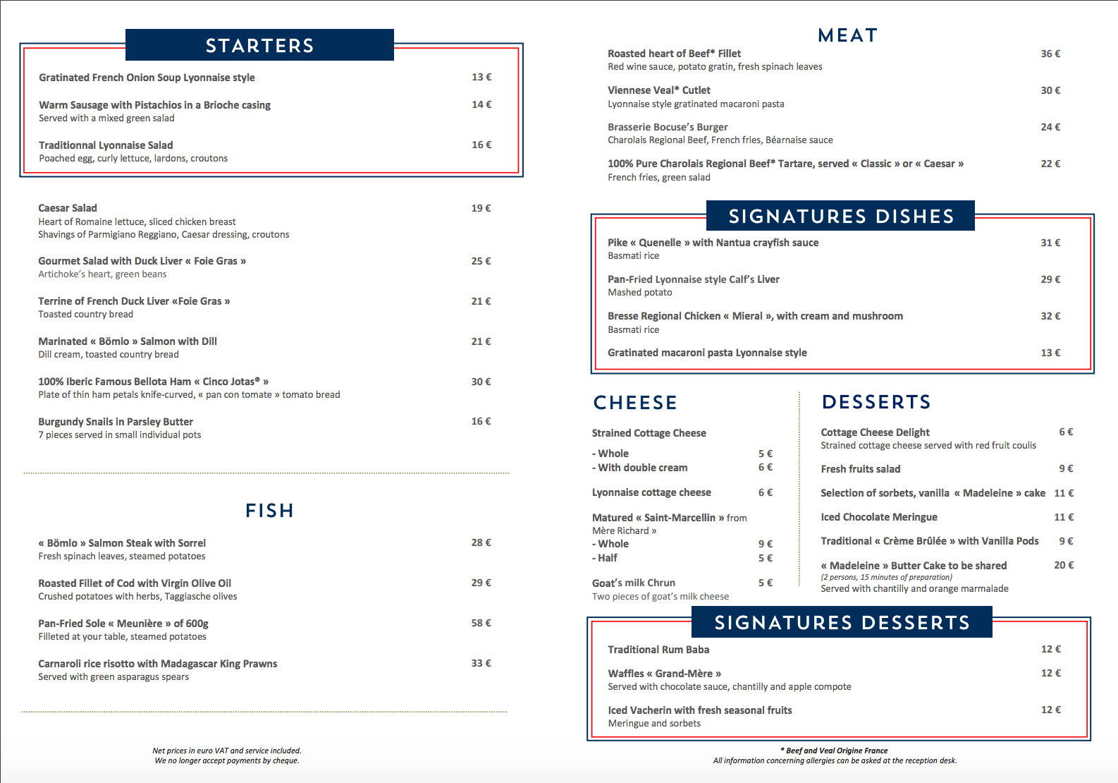 The cocktails ranged from 14 to 16 euros. Wines by the glass were 7 to 18 euros. Beer and aperitifs were 7 and 8 euros.