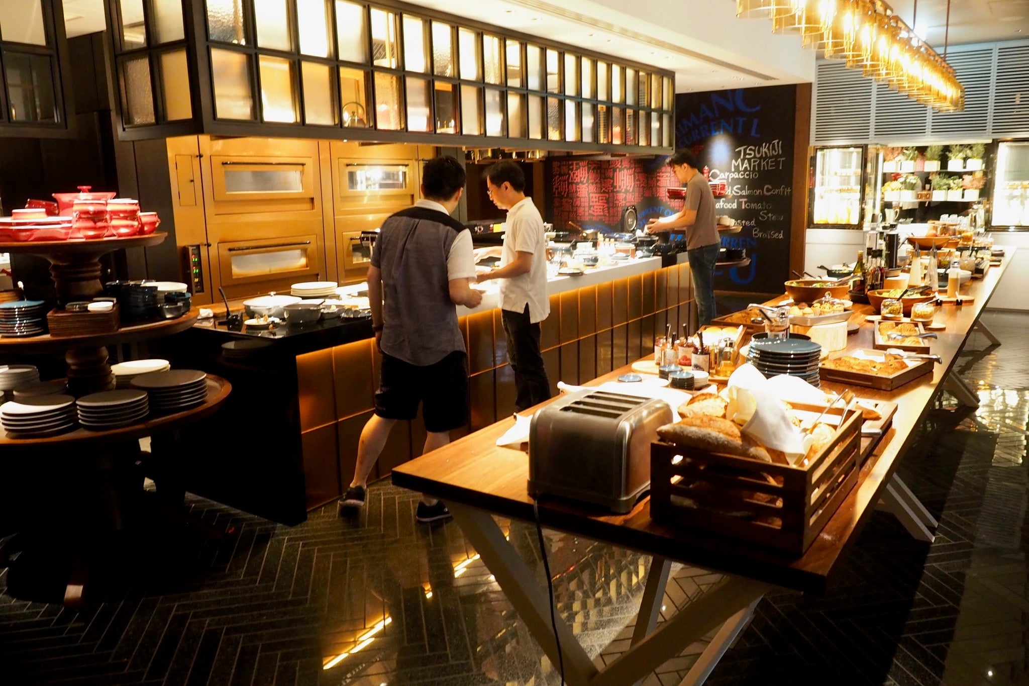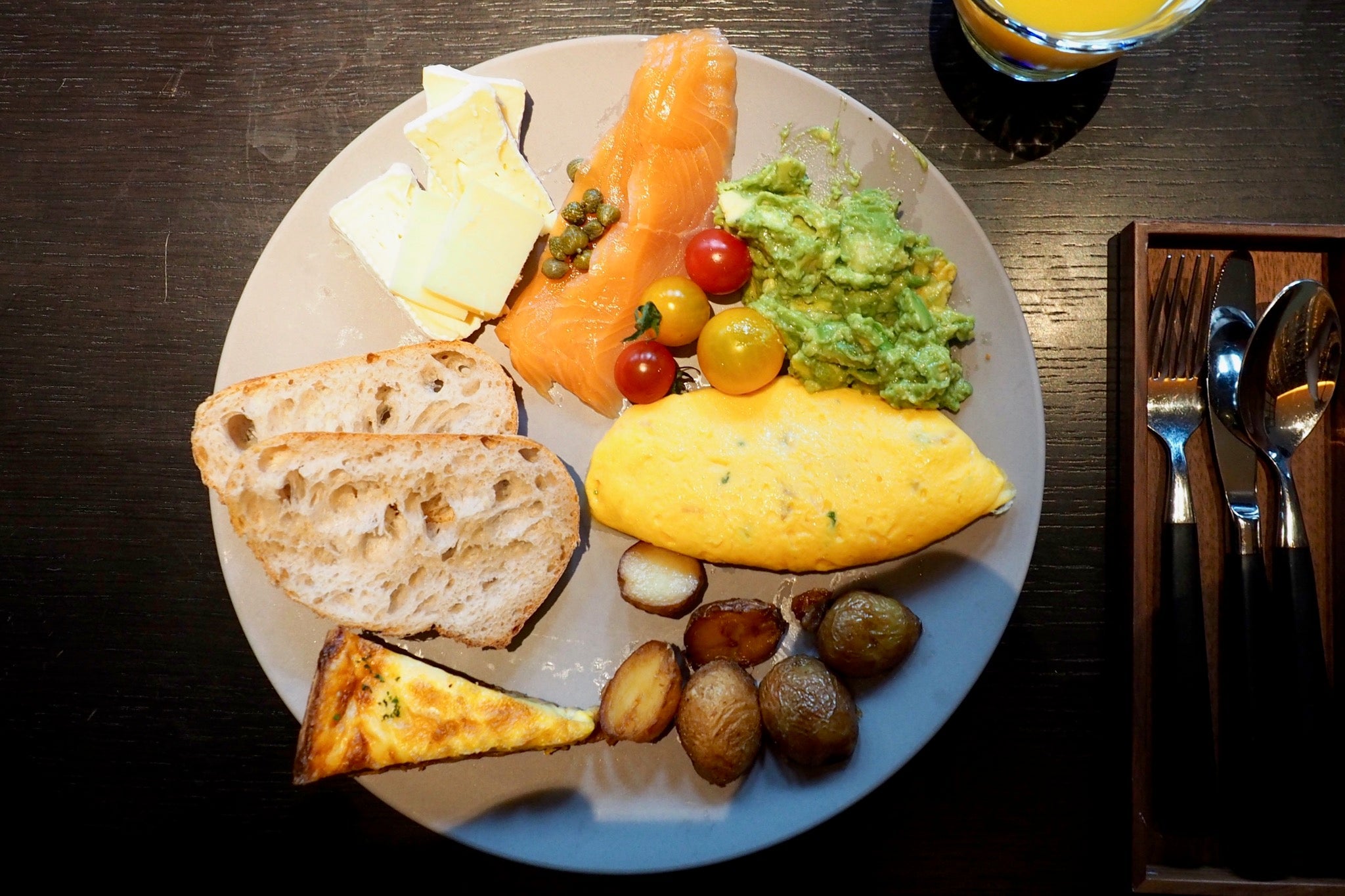 My first morning there, I ponied up 4,720 yen ($45) to partake in the breakfast buffet. Although steep for those who don't have Hyatt Globalist status or otherwise have it included in their room rate, it didn't disappoint. The spread included a balanced variety of Western and Japanese options, with a selection of hot items like made-to-order omelets and grilled fish, a salad bar, pastries and various cheeses. A mix of fresh fruit, yogurt, juice, coffee and tea were also available.