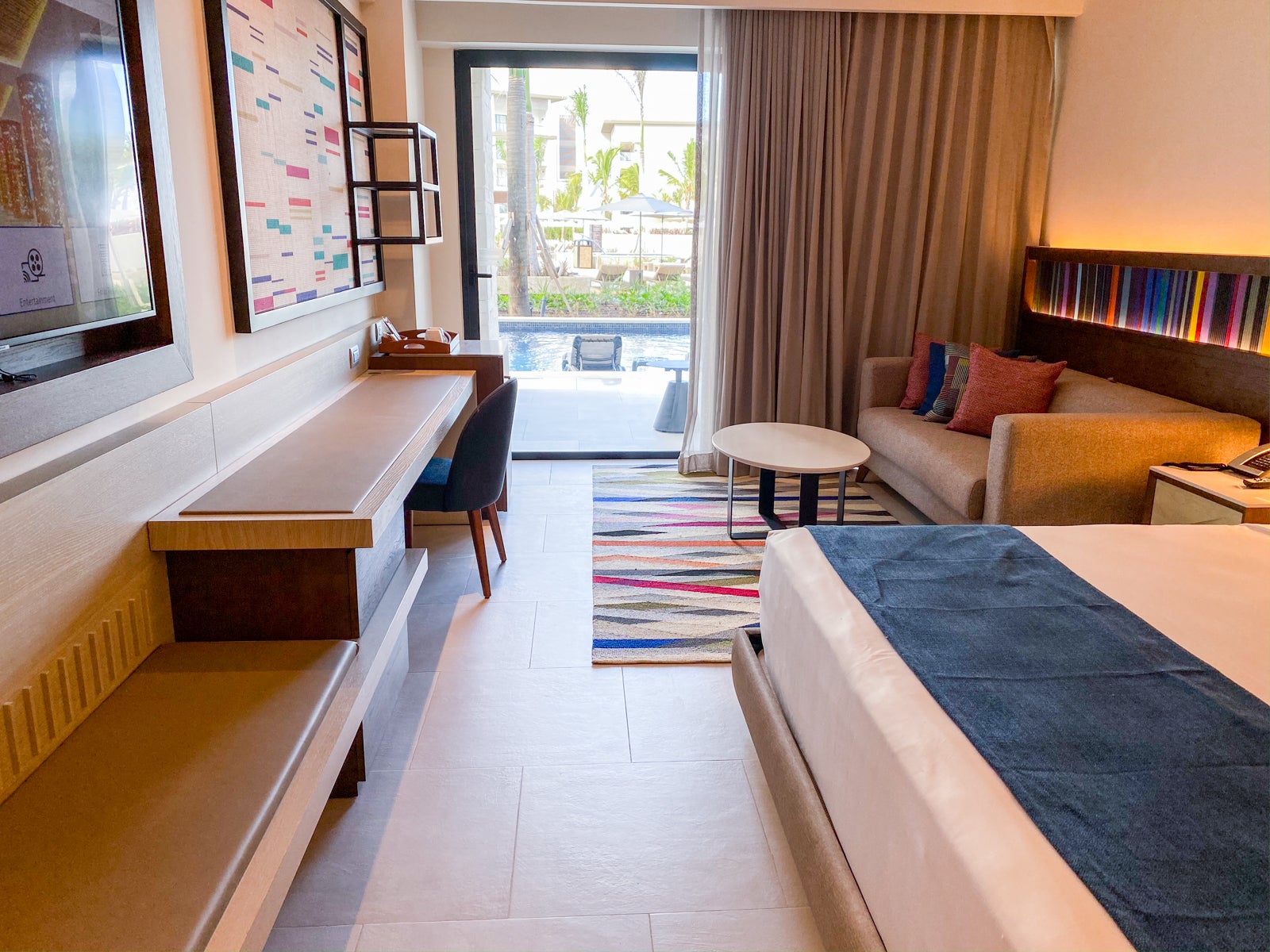 Using a corporate World of Hyatt account with Globalist status at the then-Category C pricing, I was booked into a club-level, junior suite king room with a balcony offering views of the resort, pool and ocean.