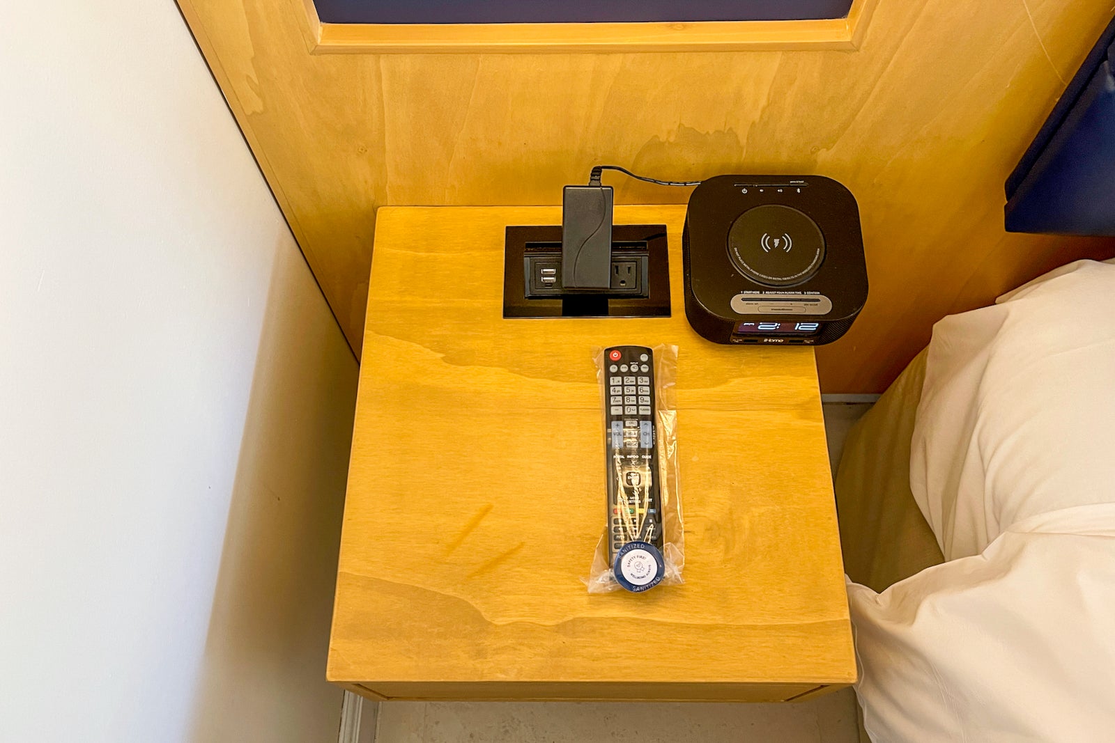 The bed was extremely comfortable and I was able to get two great nights of sleep. On either side was a nightstand with built-in U.S. power outlets and USB ports. There was also a tablet, which could be used to get information like the daily activity schedule, make restaurant reservations and order room service. The TV remote came sanitized and in a bag.