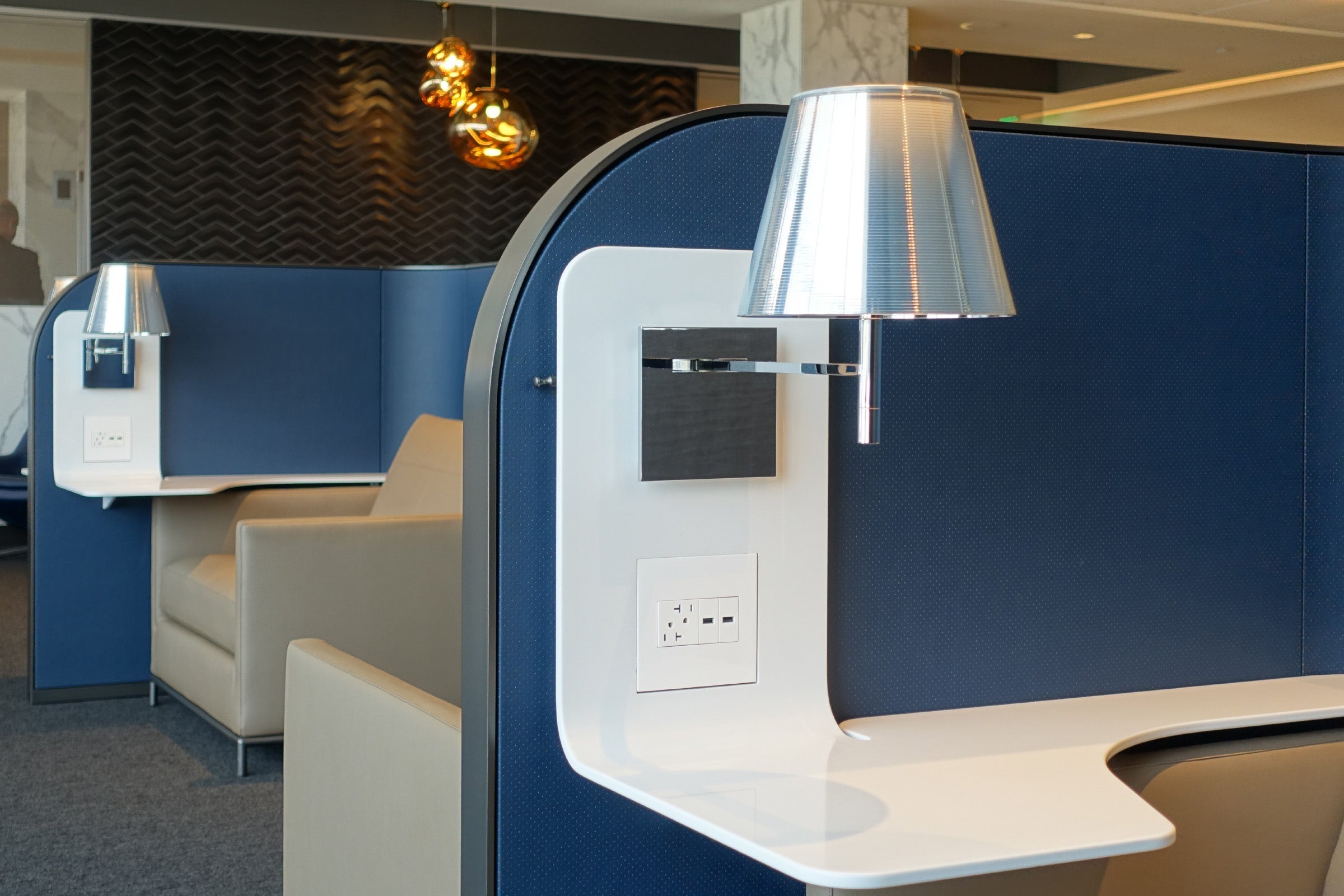 The Houston Polaris Lounge has 22 work stations, offering a bit of privacy as you wrap things up before a long-haul flight.