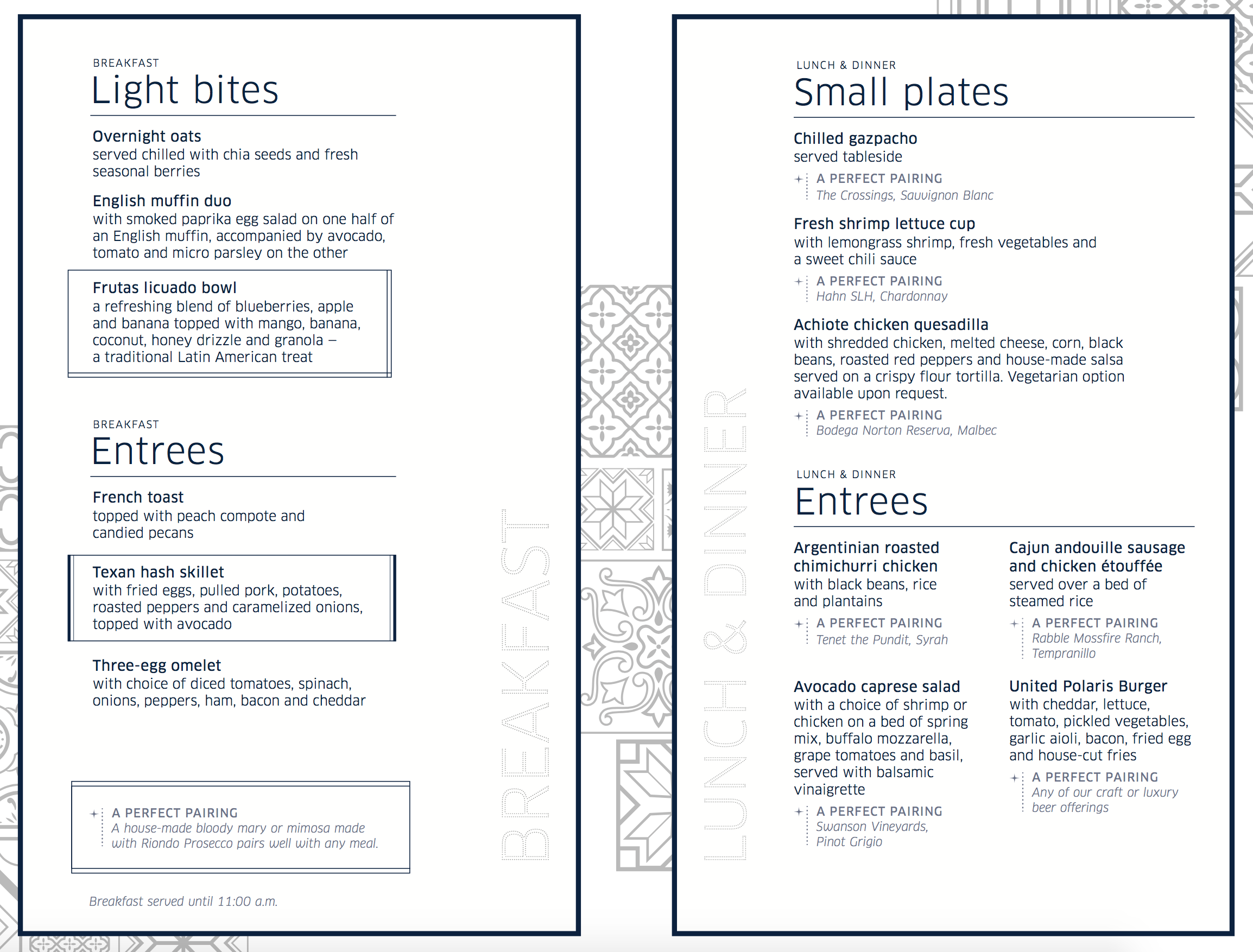 United's offering items that represent the local area along with the airline's South American destinations, such as empanadas.