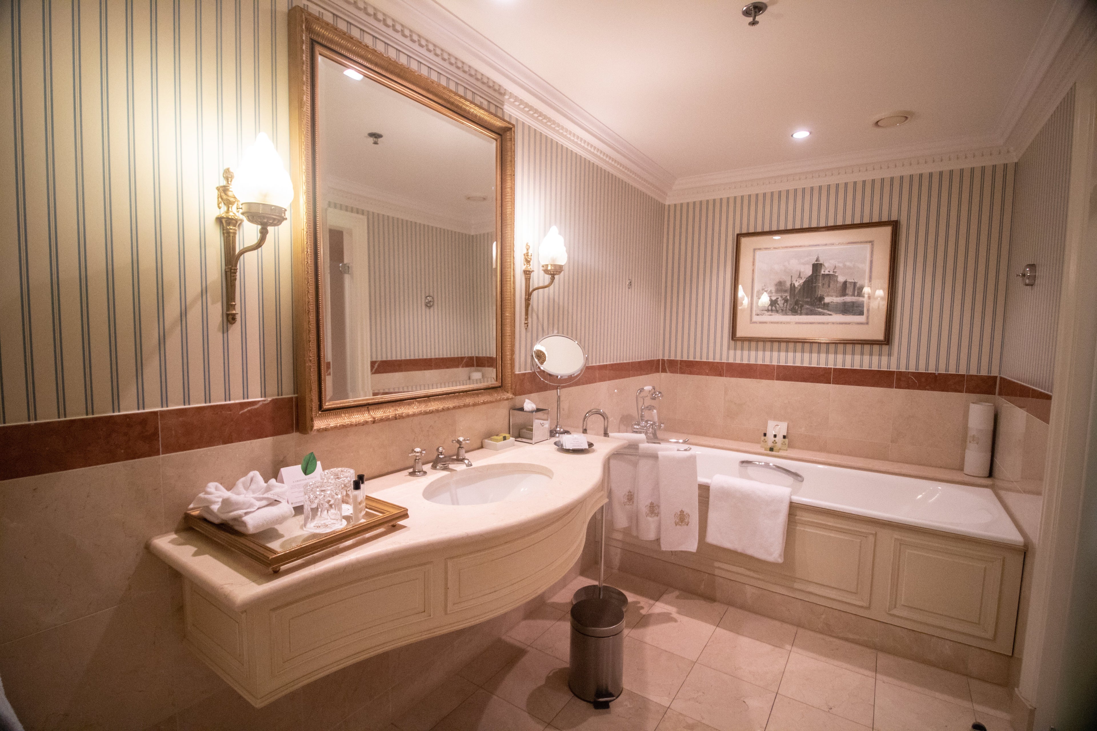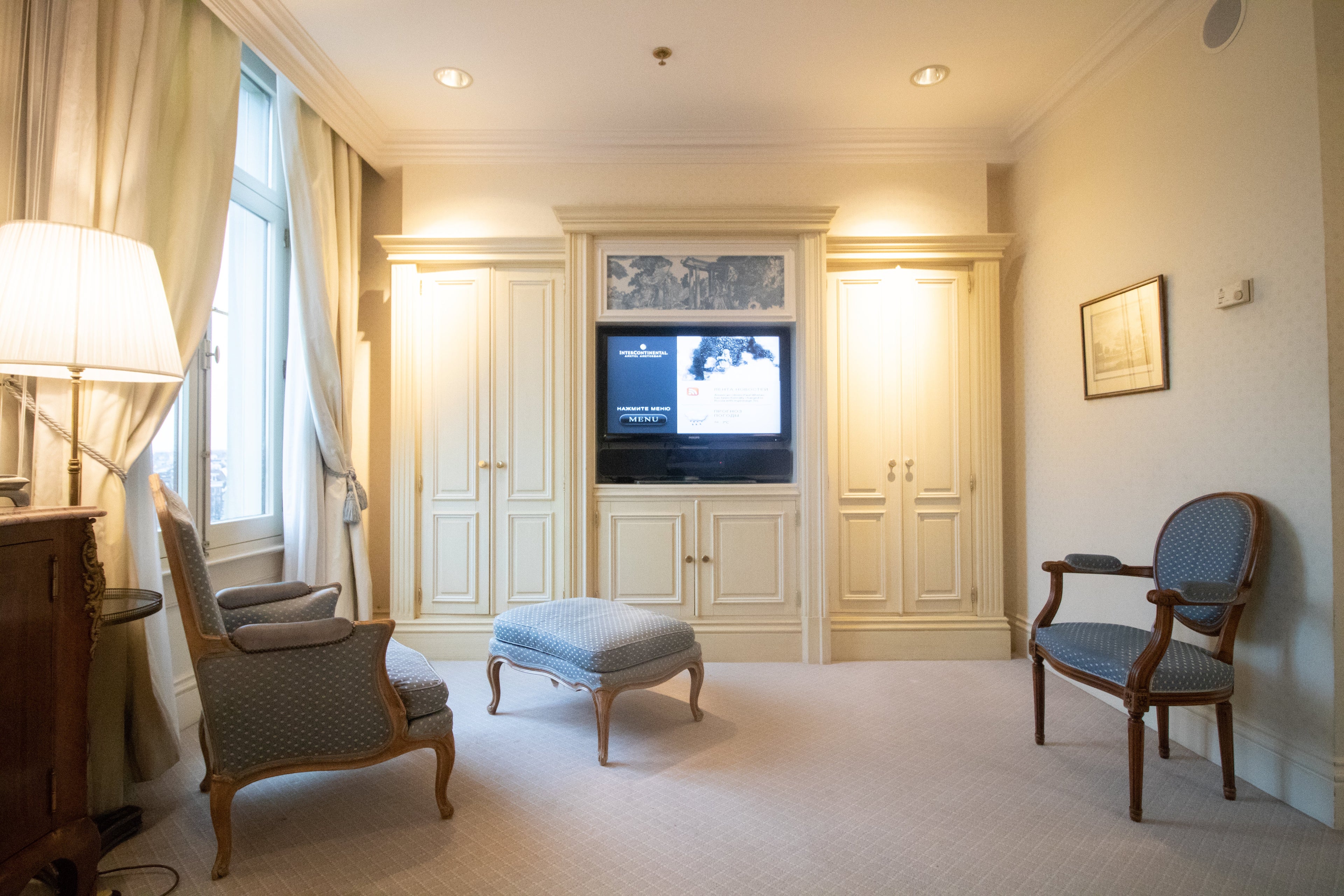 The InterContinental Amstel Amsterdam offered seven different types of suites, so I had hope that we would be upgraded to one of them. While there were a few basic suites, there were also a few unique ones that would have really required an upgrade miracle. The Rembrandt Suite boasted an interior that told the story of Rembrandt's life and art. The presidential business suite offered a room with historical details and artwork that were tributes to the previous presidents and VIP guests who had stayed there. The room I prayed for was the Dom Perignon Executive Luxury Suite, which had a sleek black-and-white design with bottles of Dom showcased around the room.