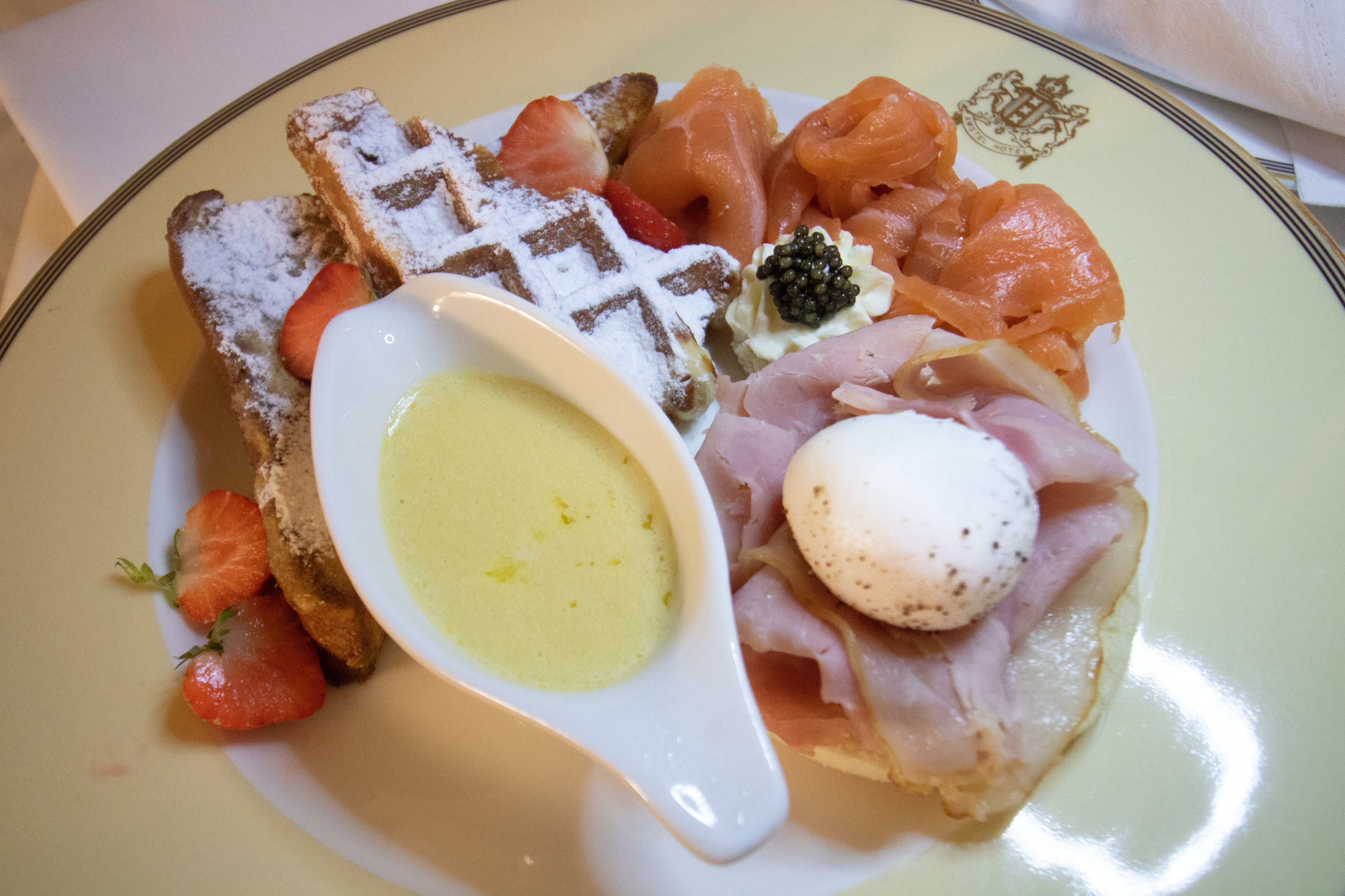 Since I'm not a huge breakfast eater and we were ballin' on a budget, we ordered just one breakfast to share (something I often do when ordering breakfast at luxury hotels).