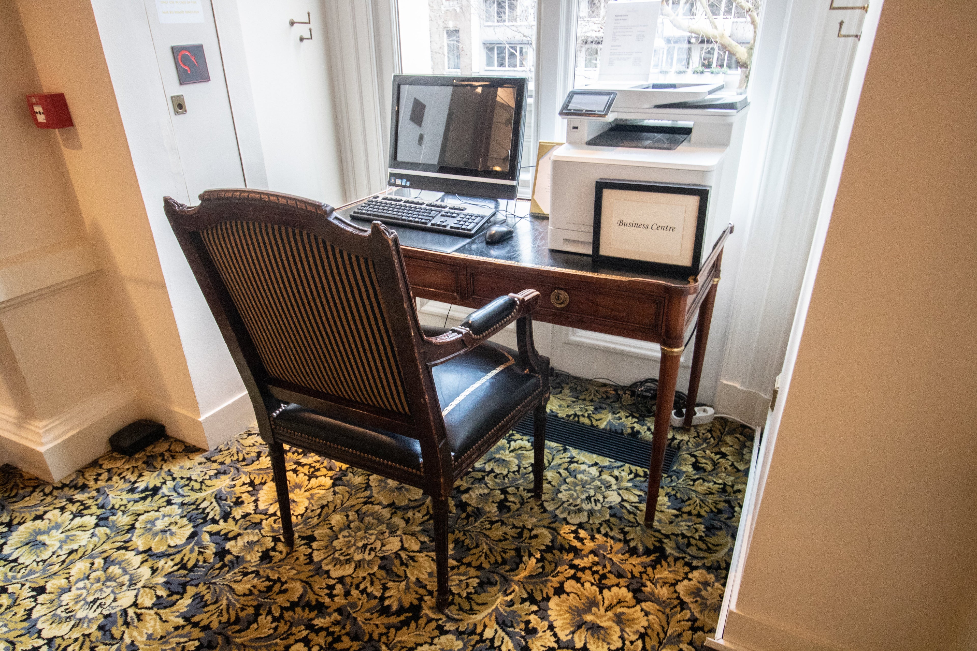 The business center was tucked into the corner, near a window that looked out toward the street. It was a simple desk with a computer and printer.