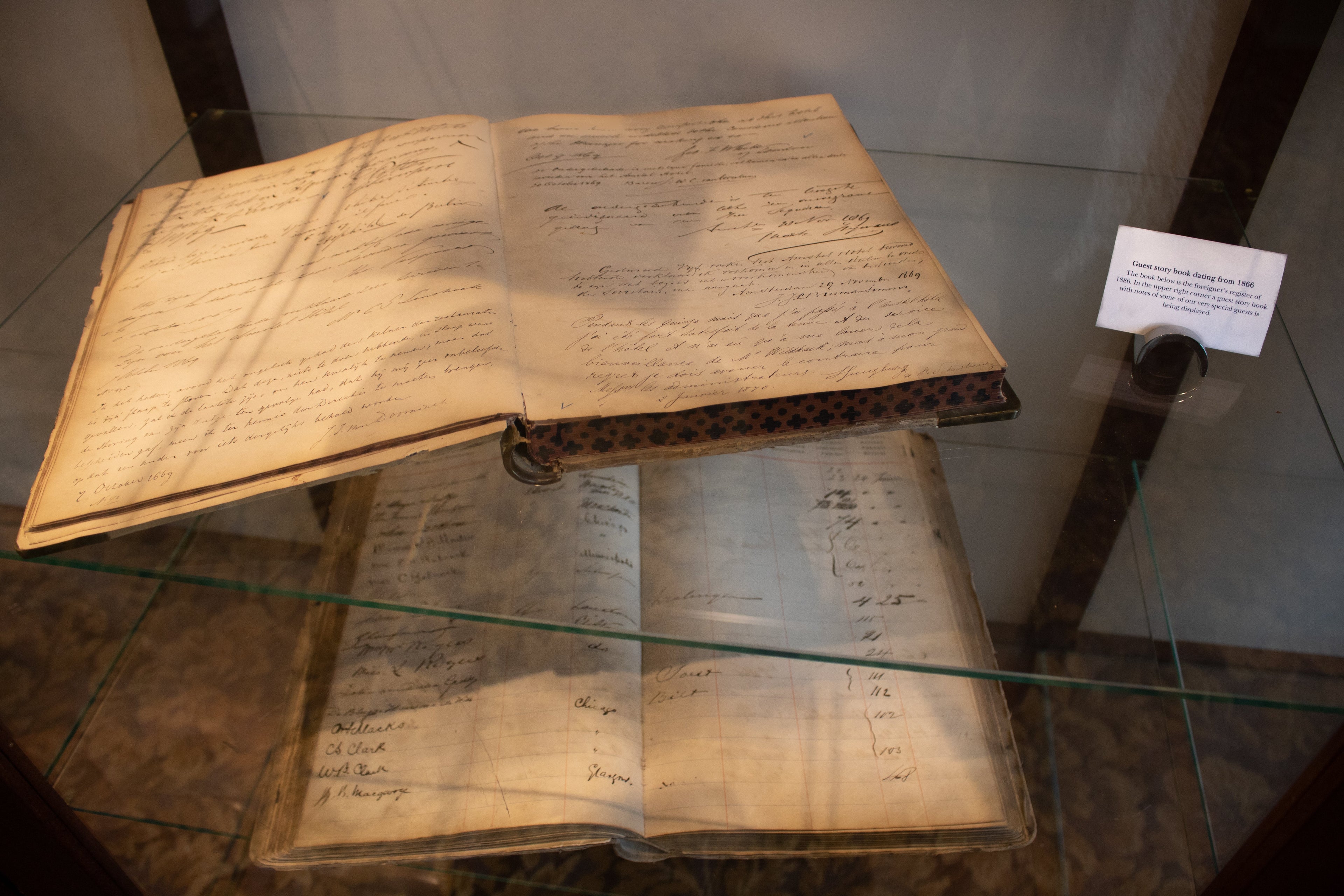 My favorite piece from the miniature museum was a hotel guest book from the 19th century.