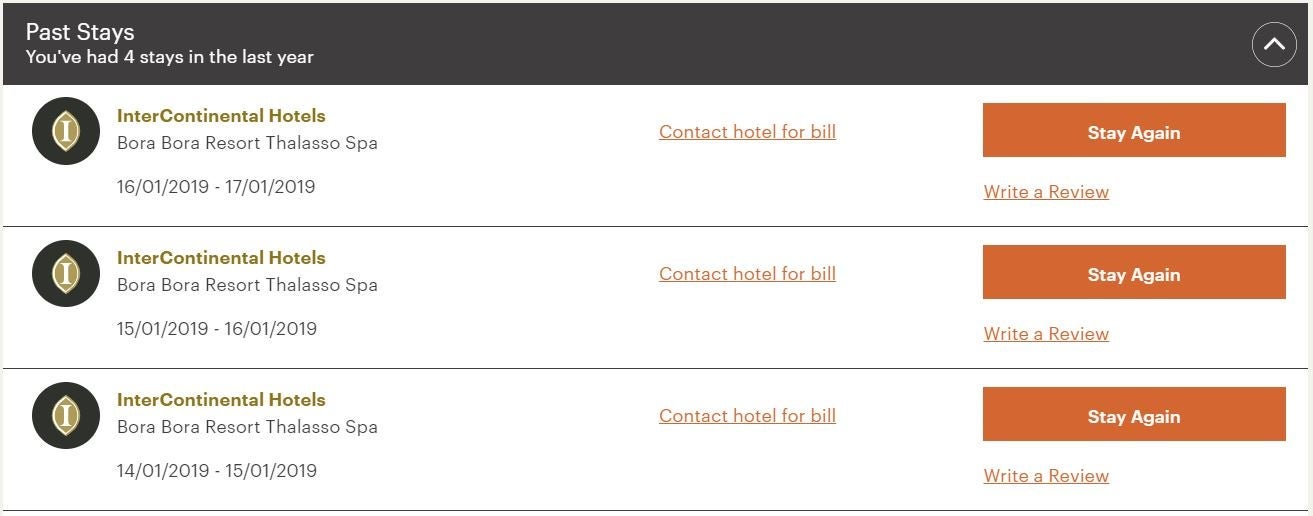 I left the nights before and after my stay open, hoping one of those nights would open up. Sure enough, one night did, following the two nights I had booked with the certificates. I was left with three consecutive nights booked on three separate reservations.