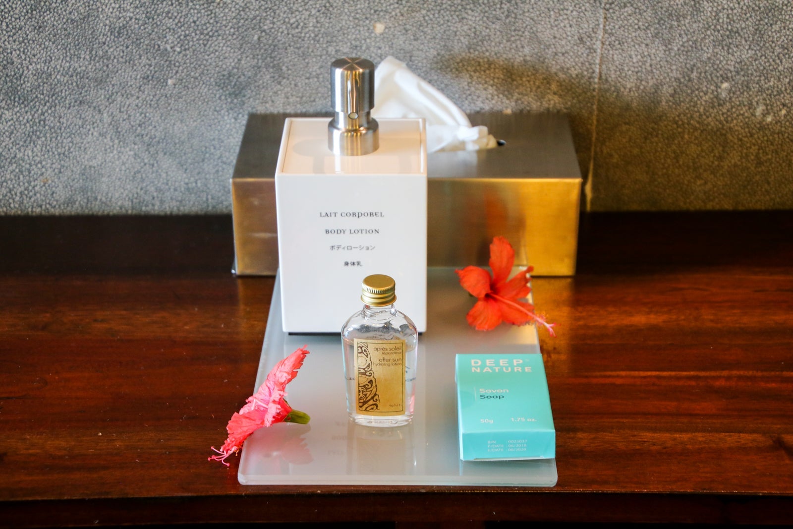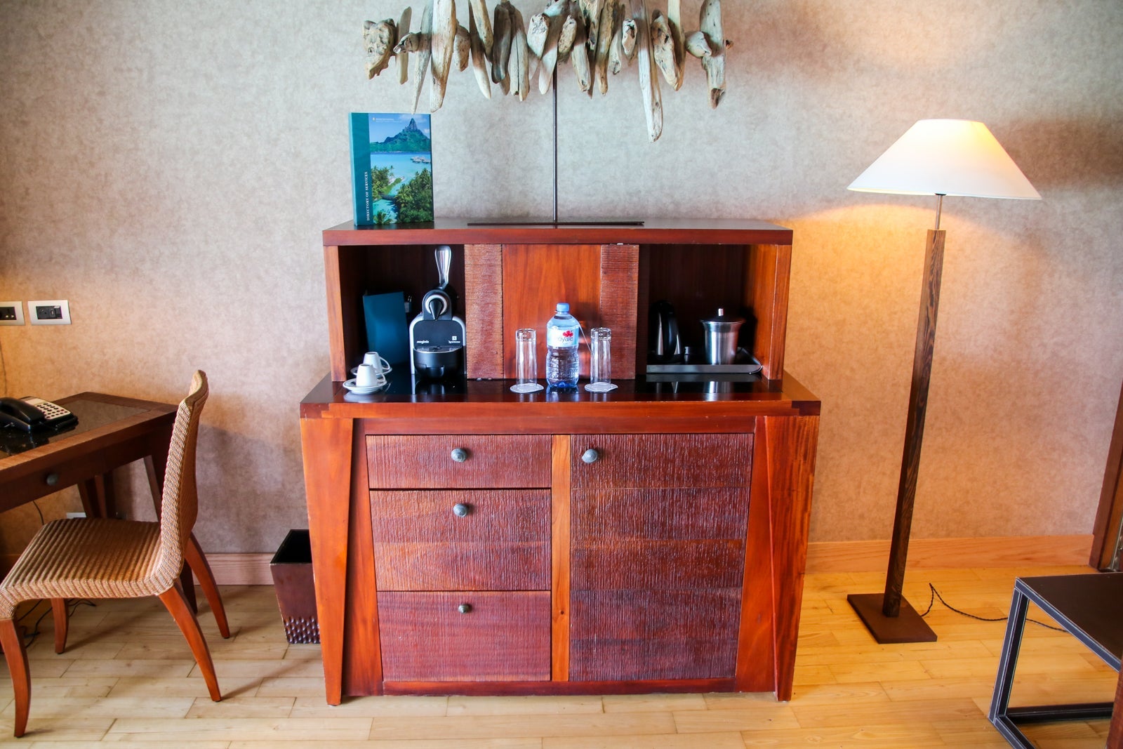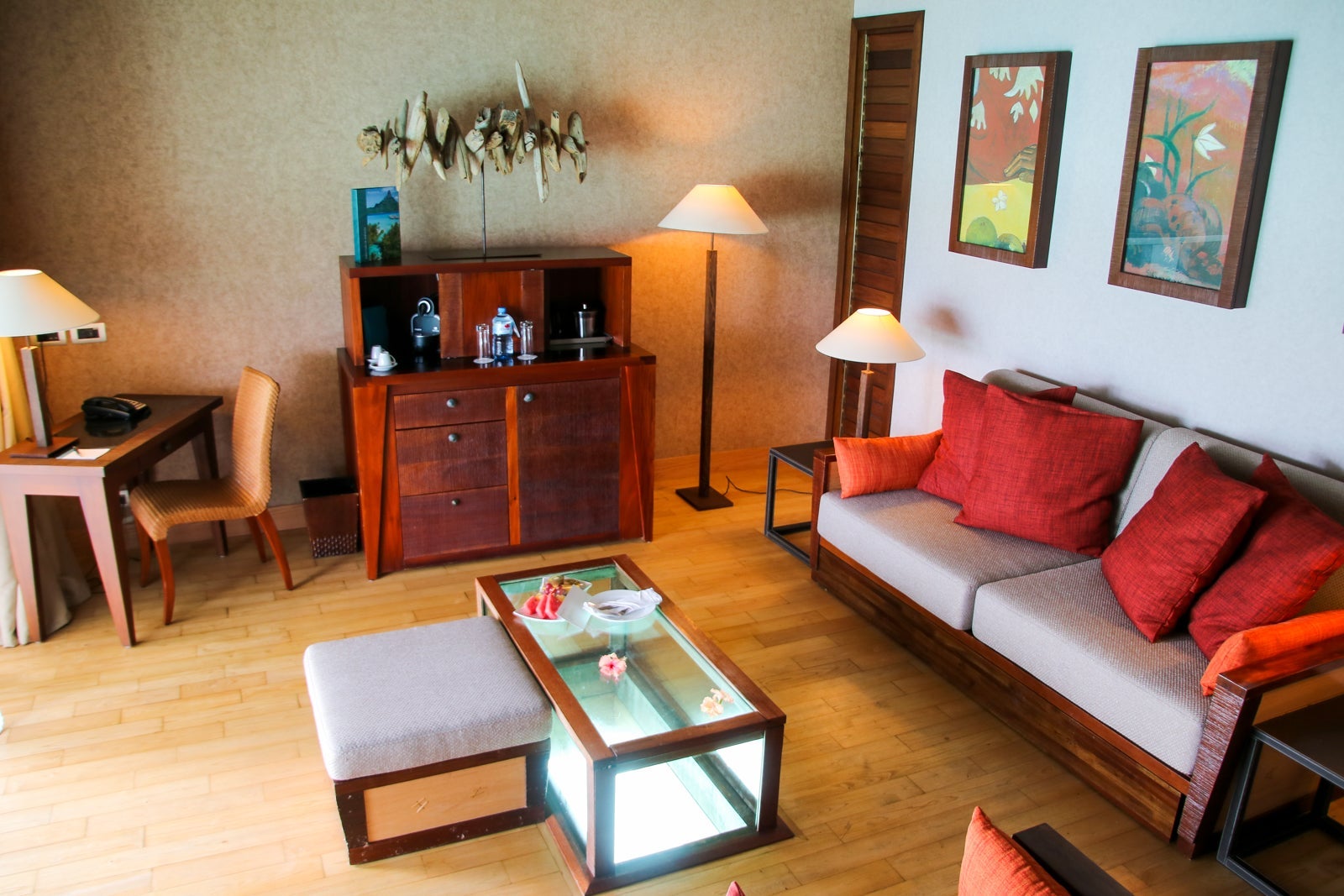 My Sapphire bungalow opened to an entryway where our bags were dropped and a welcome gift of a beach bag and chocolates awaited us.