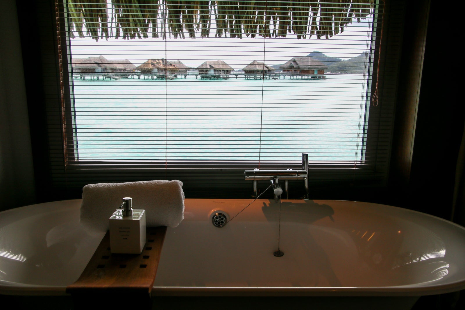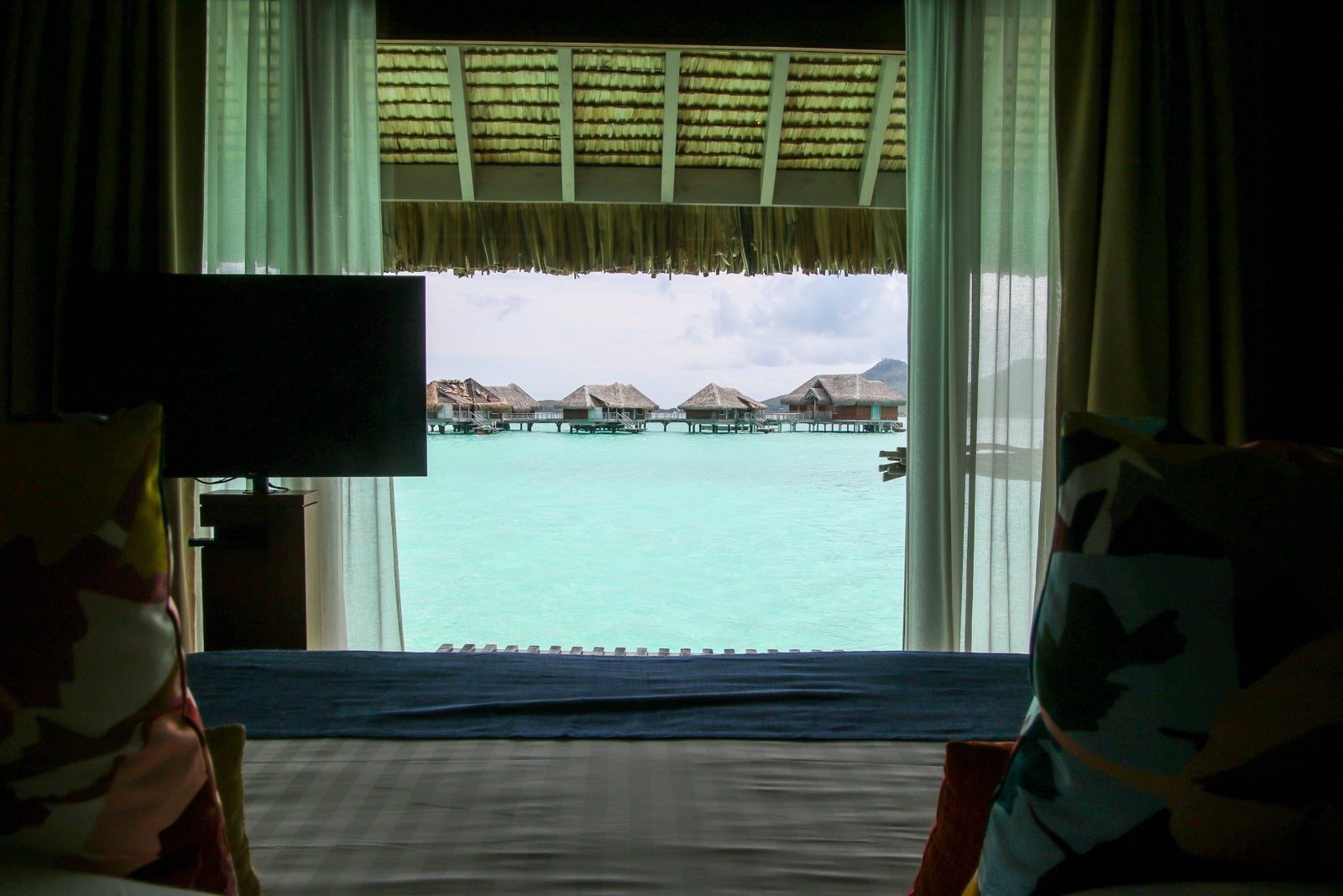 The bed faced a huge picture window that looked out onto the lagoon.