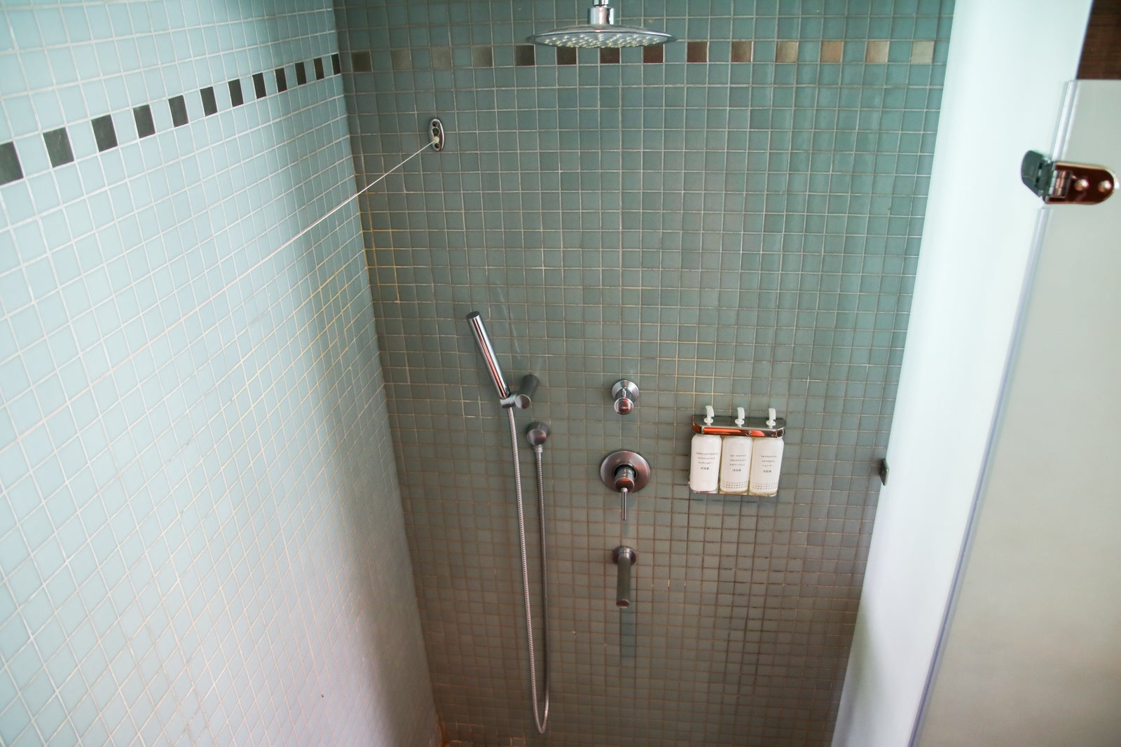 The shower liquids were in large refillable containers instead of individual plastic bottles, which may not be popular with some guests but is part of an environmental initiative at the resort.