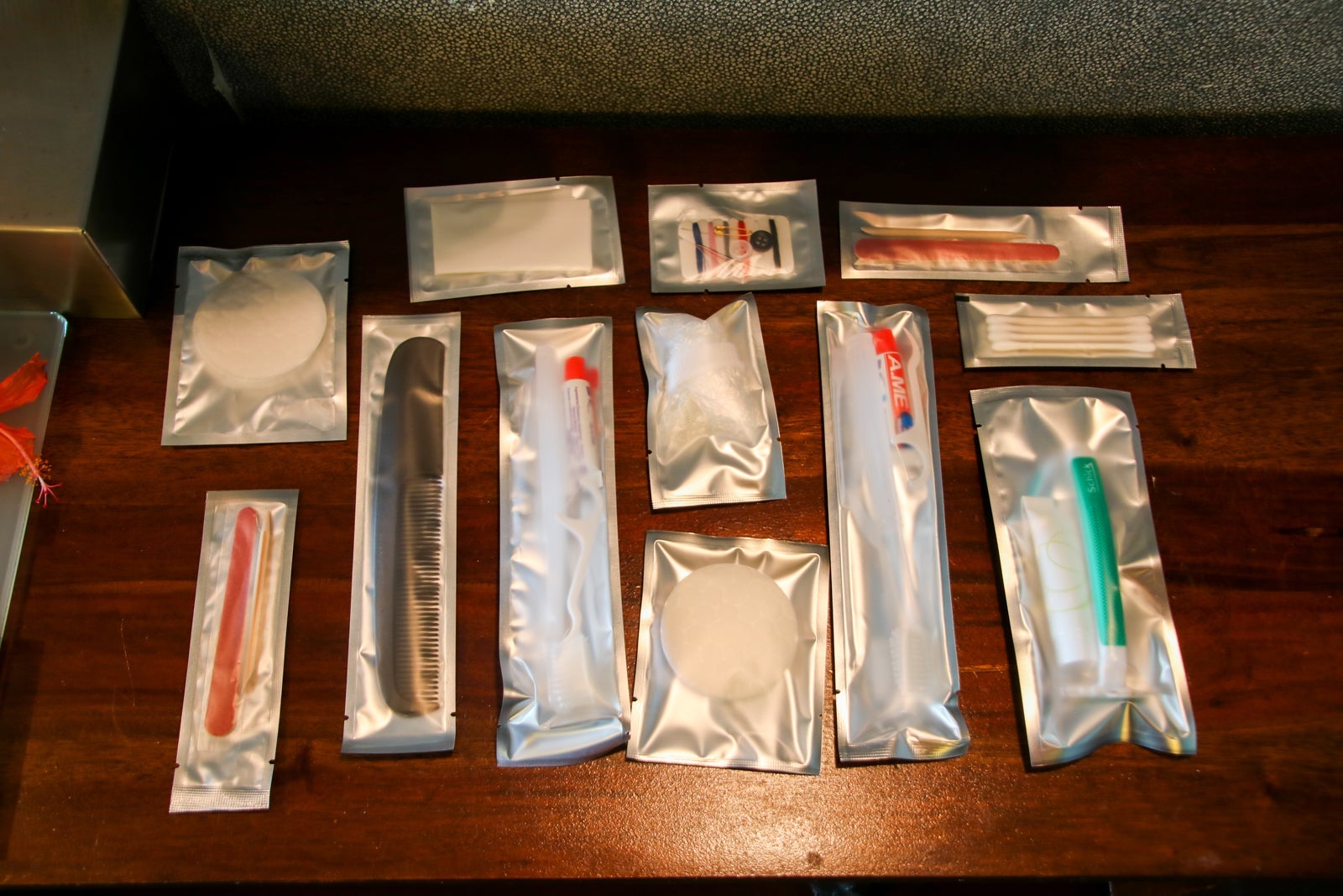 A full assortment of bathroom amenities was available.