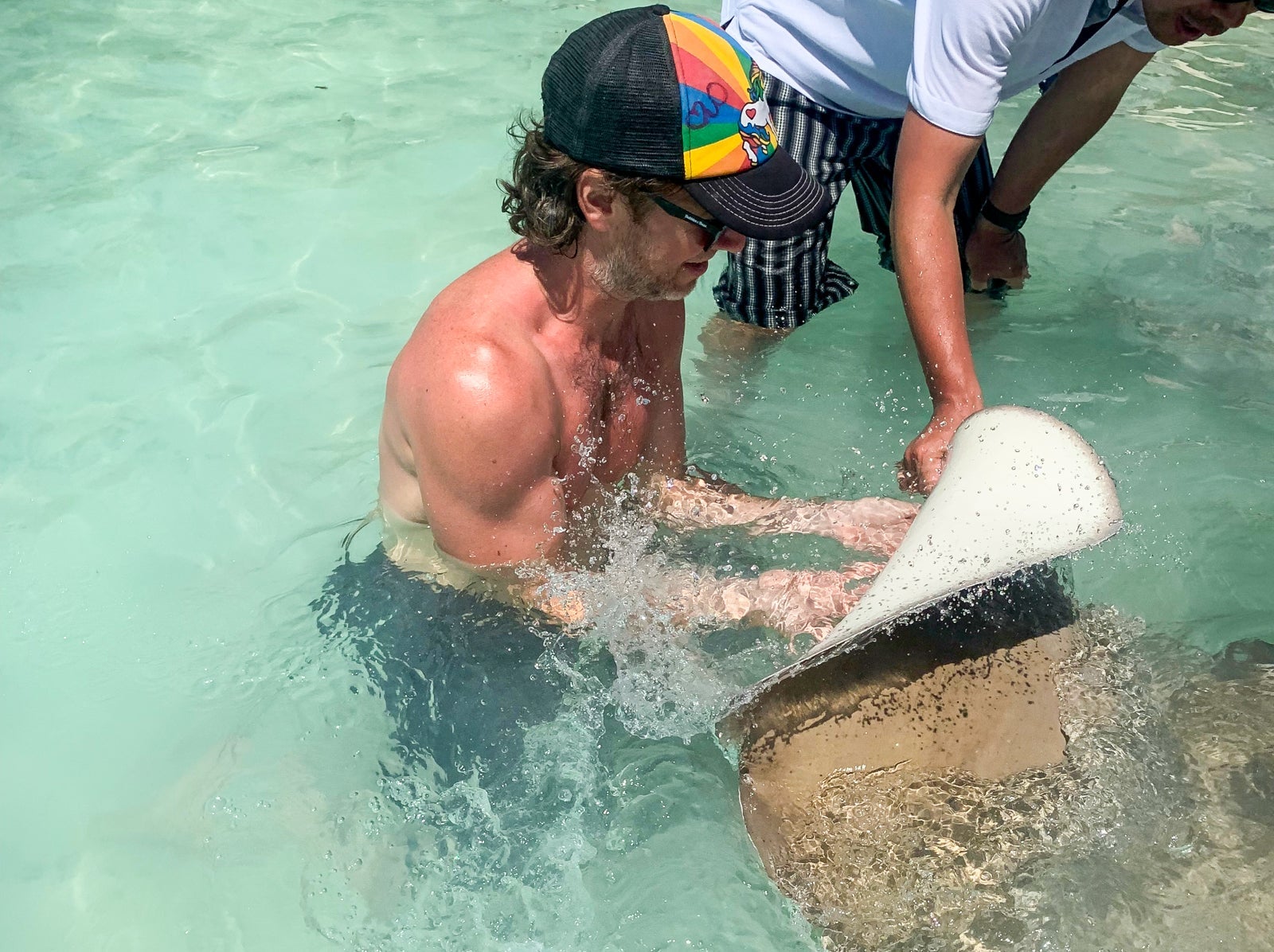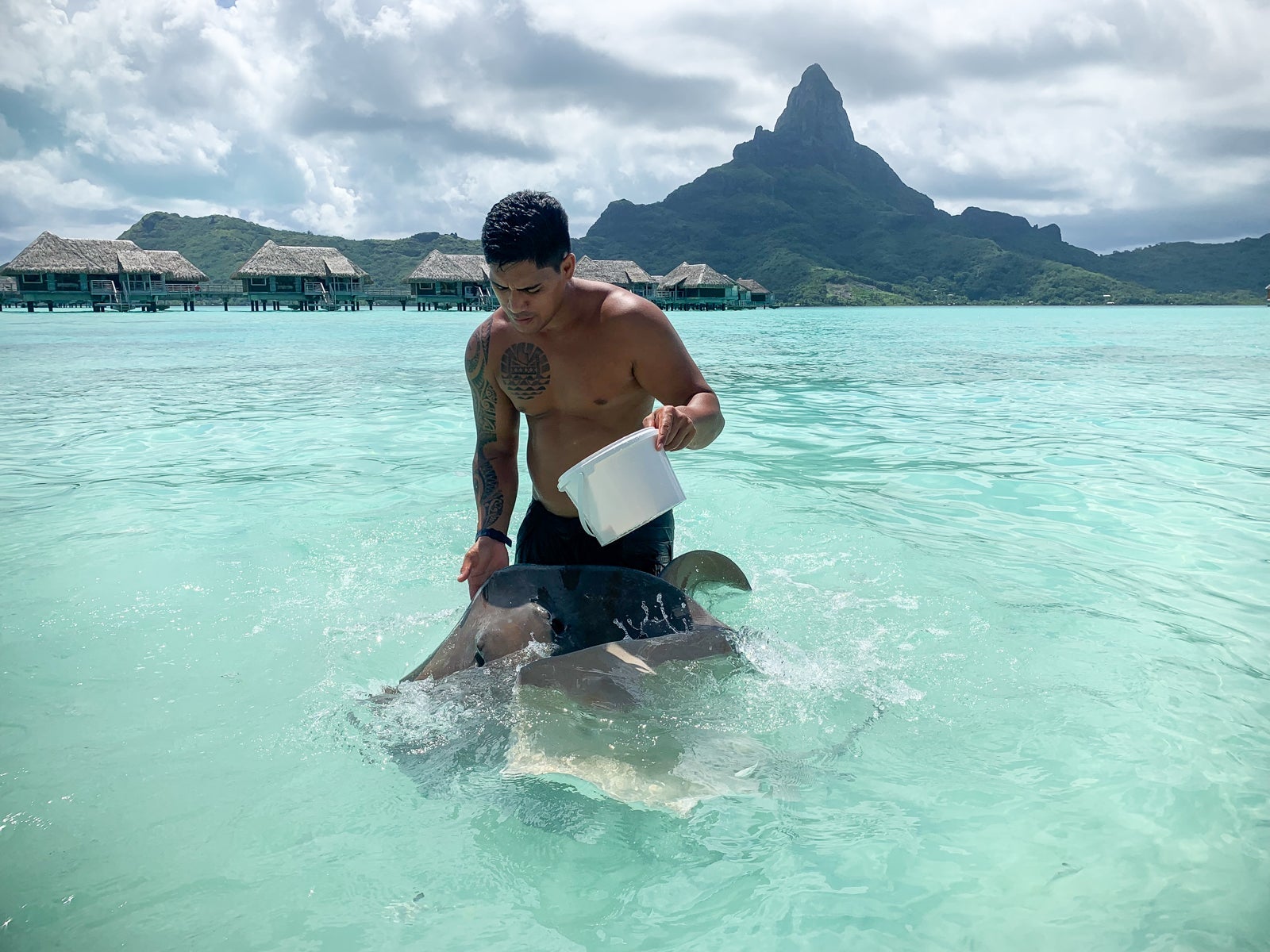 Every day at 2pm the resort hosted a stingray feeding. About 30 minutes before, the stingrays started to circle.