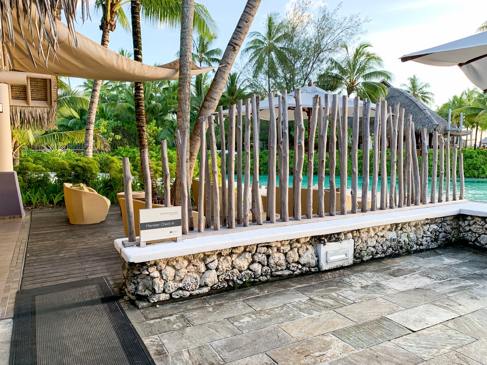 That evening, I emailed the GM and explained my concerns about the fees (without any mention of the agent's demeanor). He replied, saying that I wouldn't be charged transfer fees as the transfers were indeed free before April 1. (Also, I checked the next day at the concierge desk and the agent quoted $120 for the transfer to St. Regis. We ended up taking a transfer arranged by the St. Regis for $33 per person for the 10-minute boat ride. And the next evening as I walked by the check-in counter, I noticed for the first time an exclusive Ambassador check-in area directly adjacent to the check-in area where the agent had sat us.)