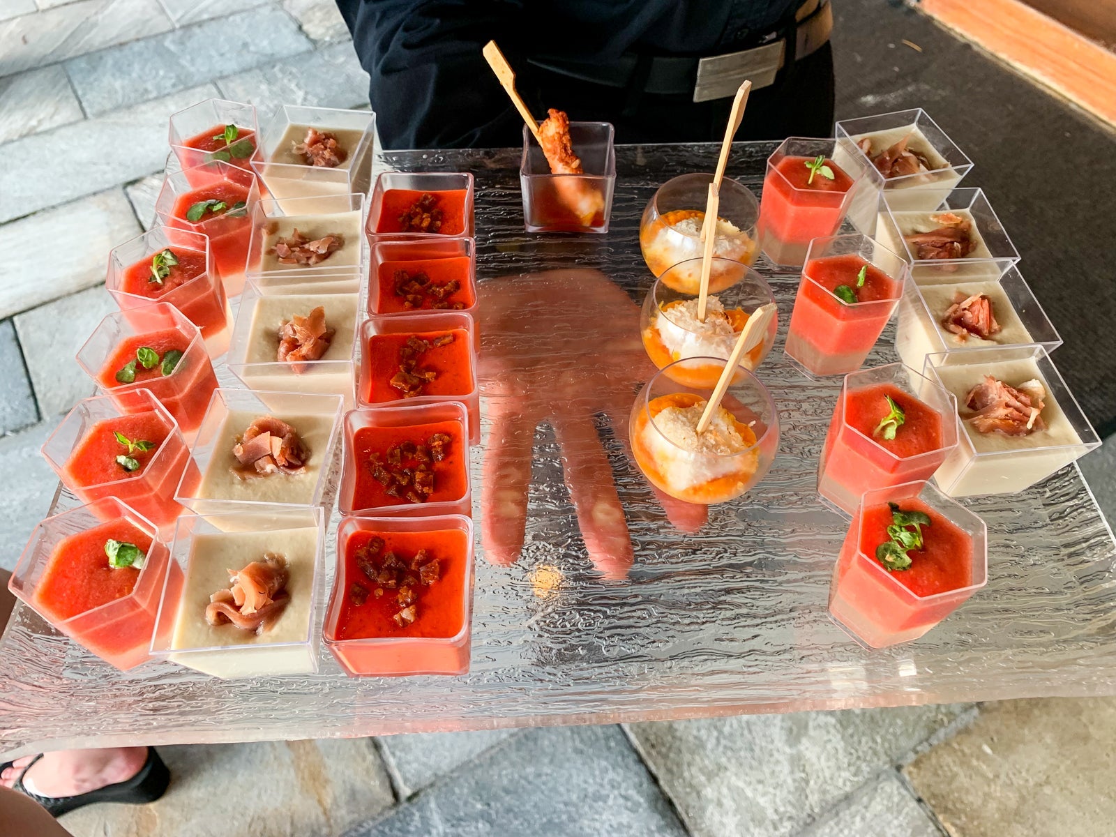 The first island table contained a selection of meats, cheeses and olives along with miso soup.