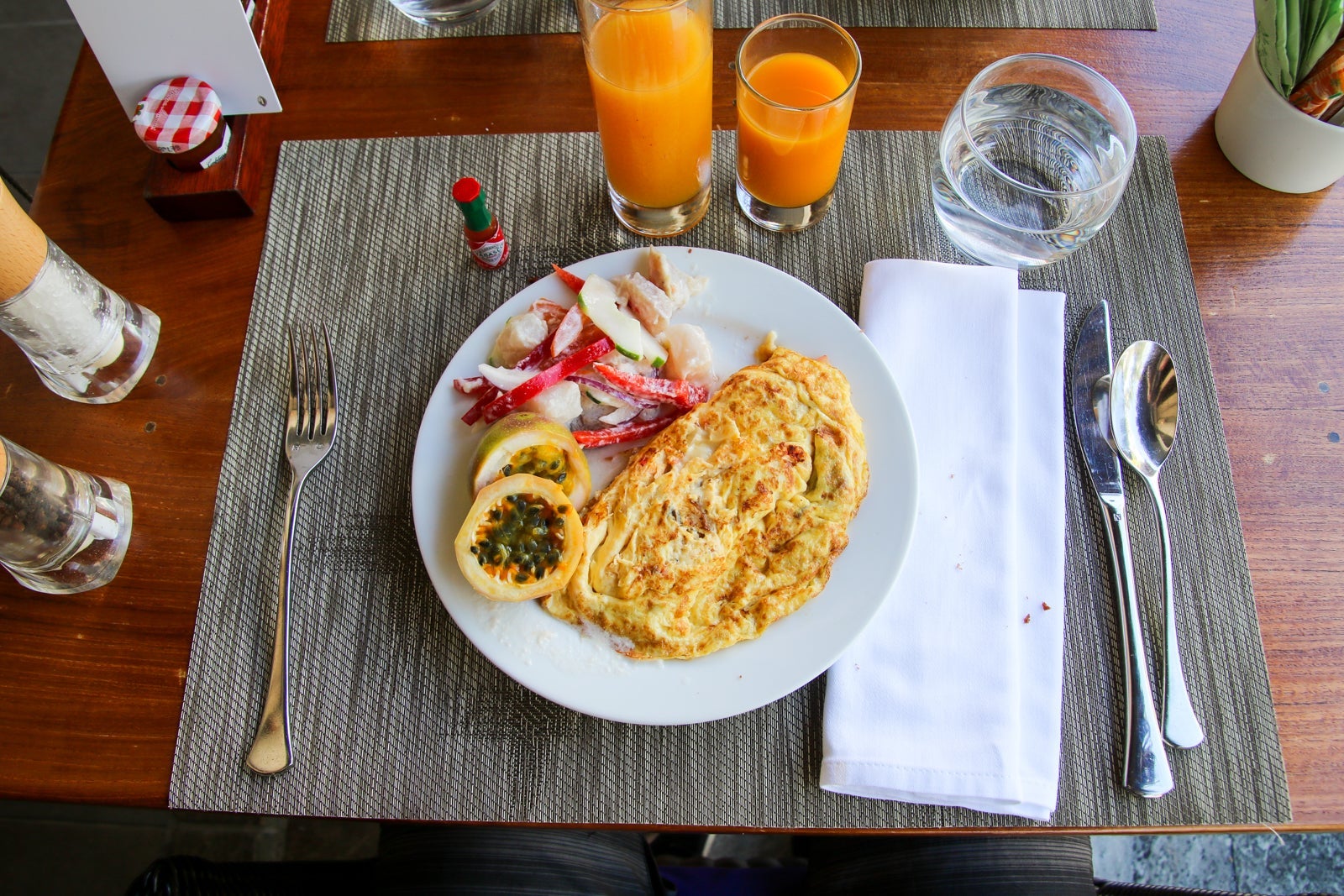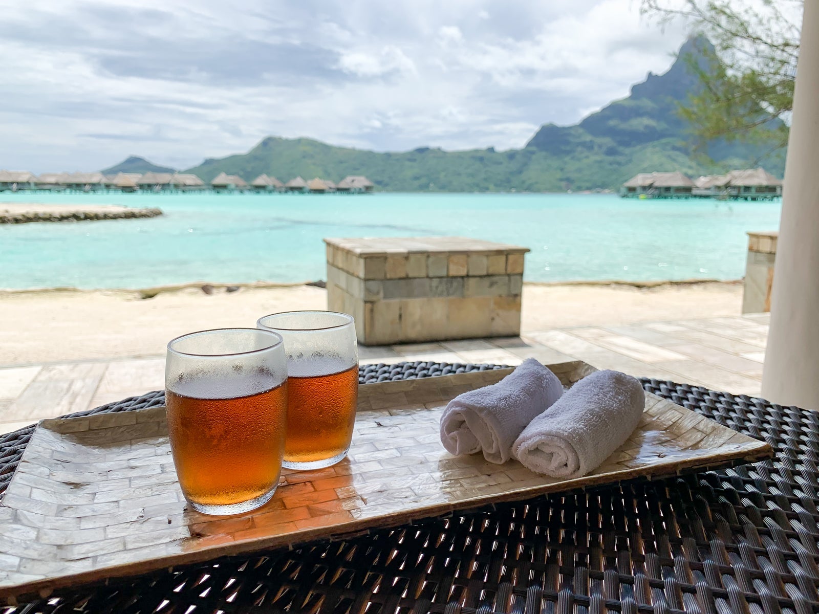 She led us to a table with a view of the lagoon, sat us down and brought us cool towels with glasses of vanilla iced tea.