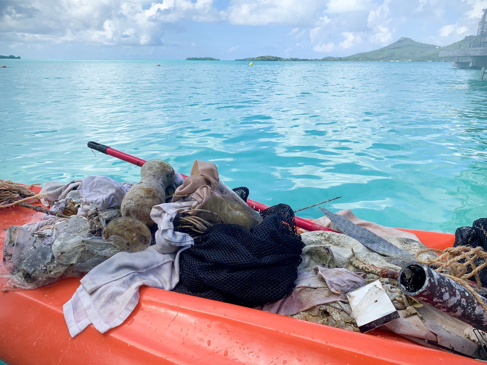 The staff members also take one day a month to snorkel and collect garbage in the lagoons beneath the bungalows. That happened to be the following day and guests were invited to join, so we did.