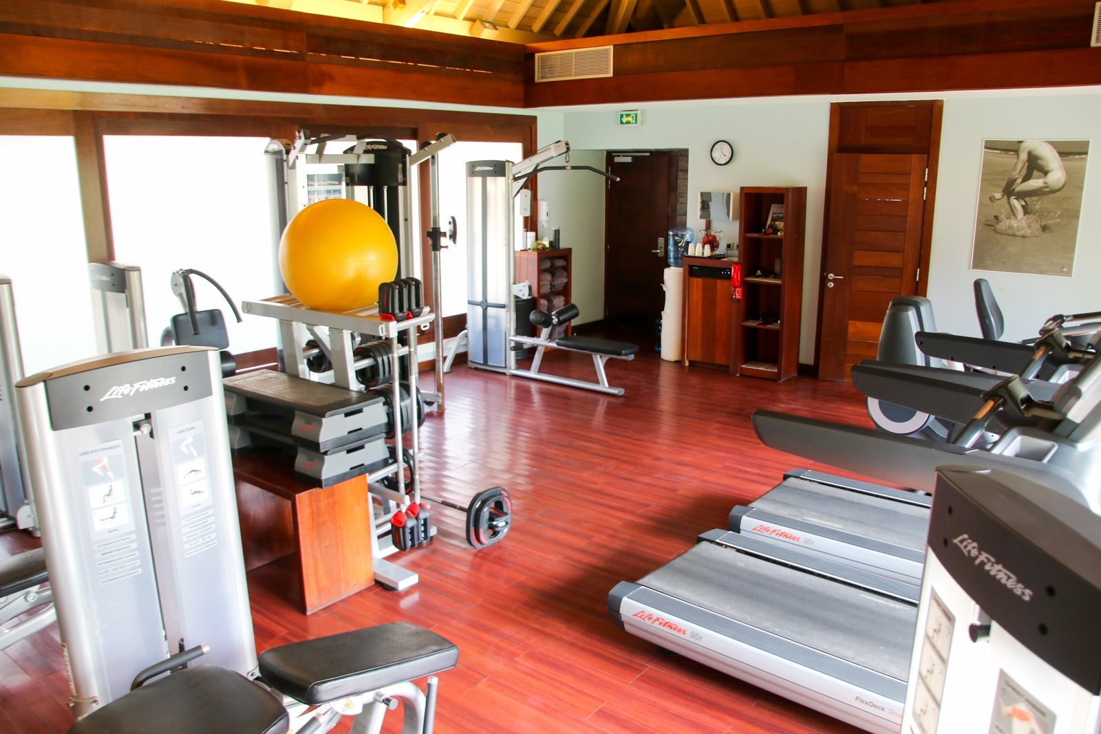 Next to the spa was the gym with the standard equipment. No one was using it but it did have free filtered water and apples.