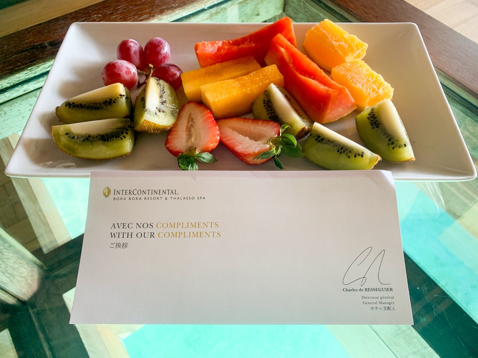 On top was the IHG Ambassador welcome fruit plate.