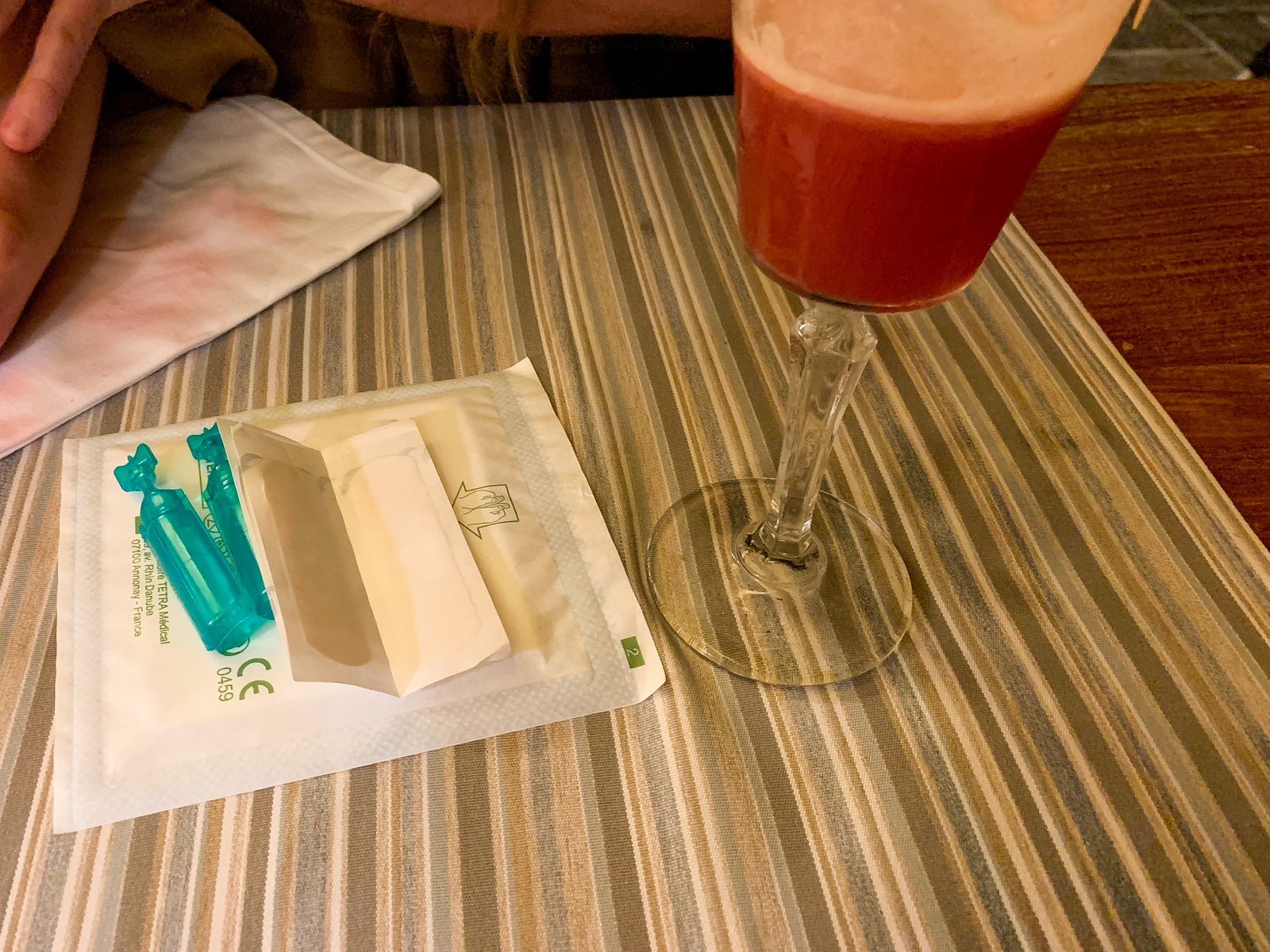 My friend was telling an animated story when she knocked over her cocktail, breaking the glass and cutting her hand. The waiter came right over as we assessed the cut. It was small and we told him she'd be fine. He disappeared and returned a minute later with saline, gauze and band-aids. After a few more minutes, he came back with a new cocktail that was on the house.