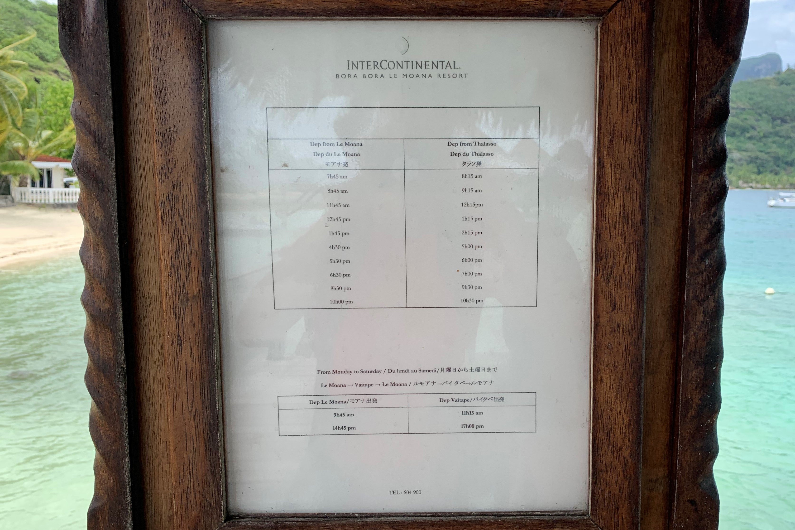 A ferry back the main island via the InterContinental Le Moana ran on the following schedule, which is free for Thalasso guests before 4pm (except perhaps for check-in and checkout, which I discussed earlier).