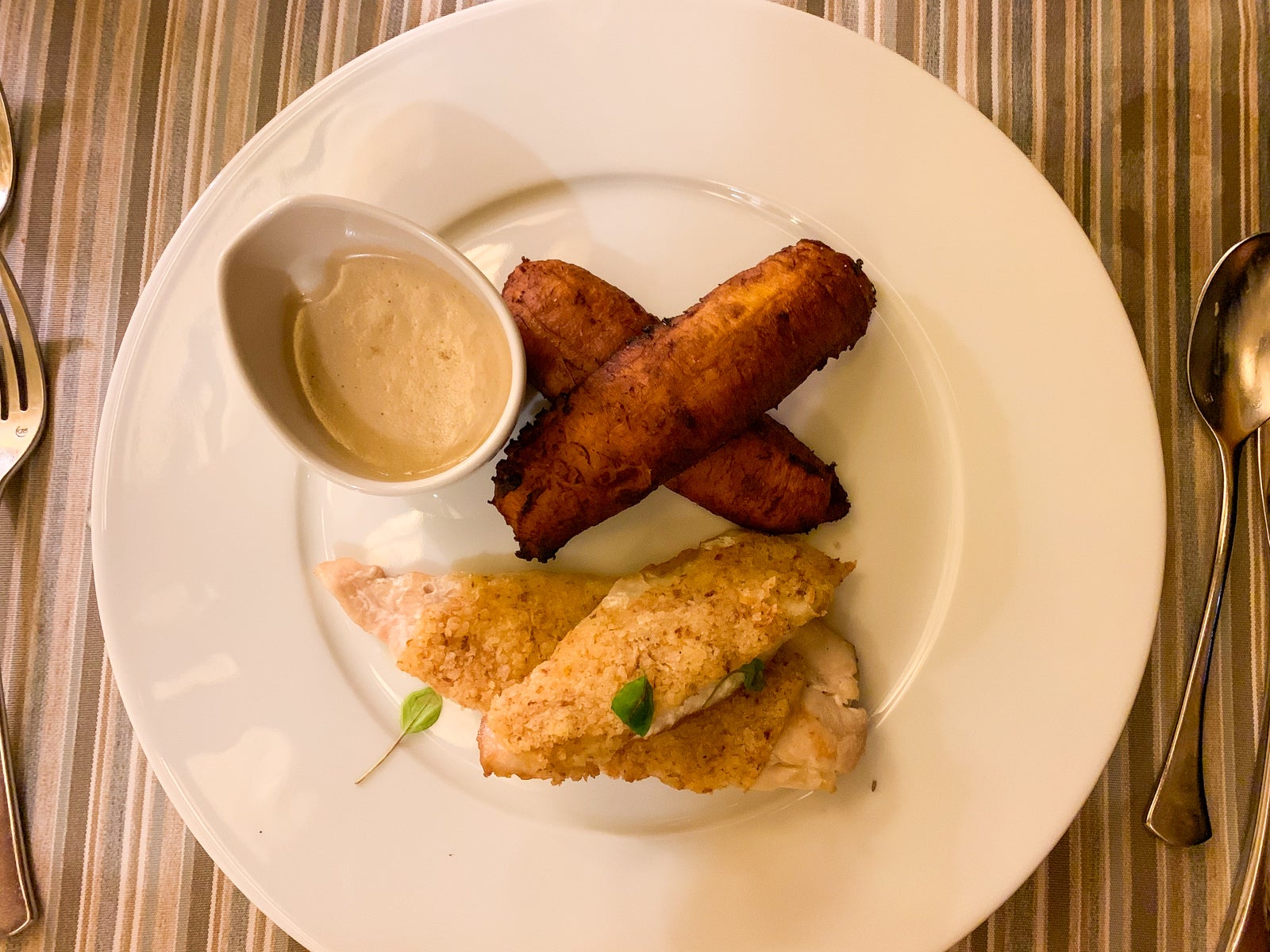 Which brings me to highlight of the breakfast -- the Polynesian table. The large breakfast tray rotated between a sweet banana dessert and a savory fish curry.